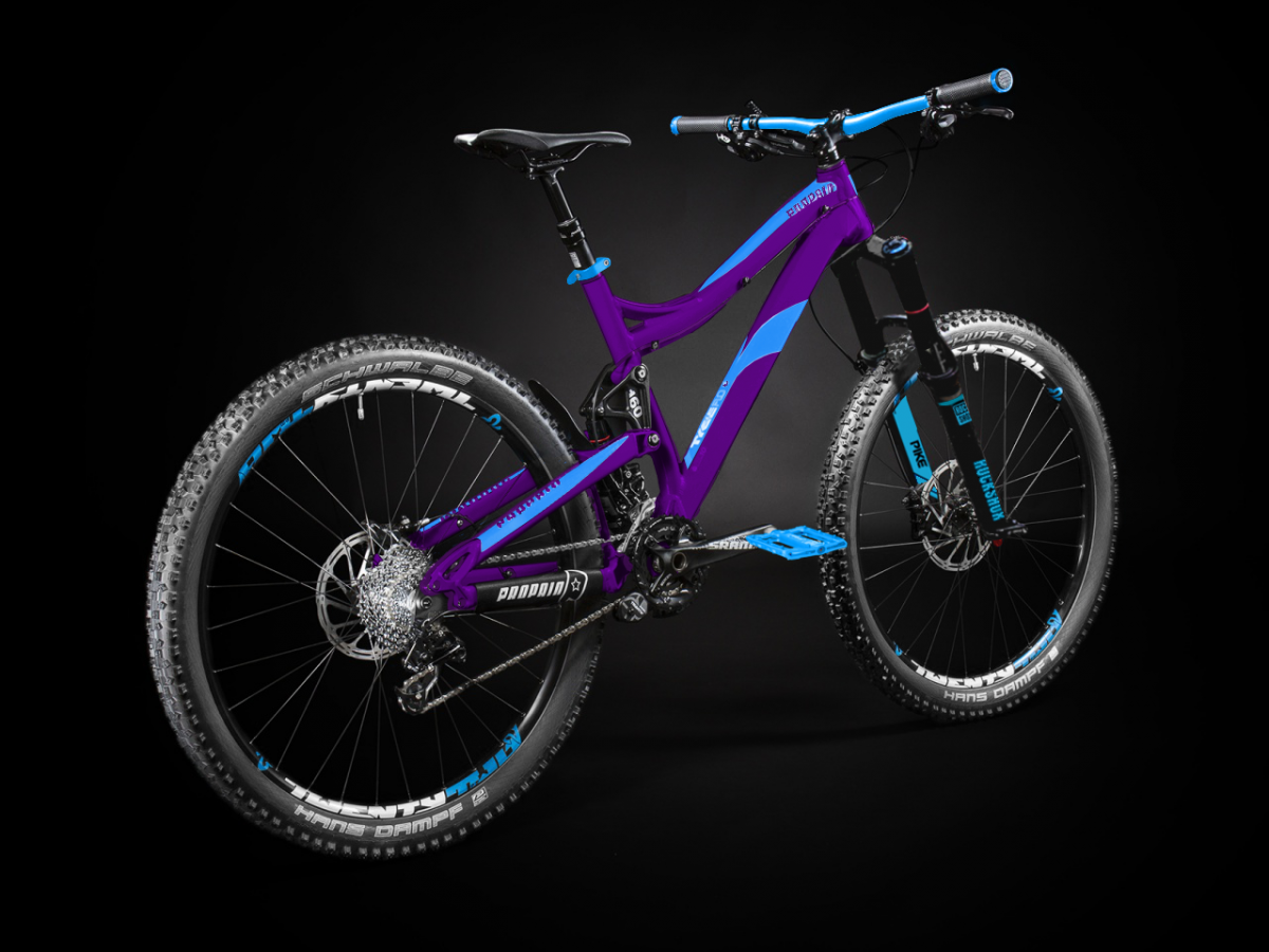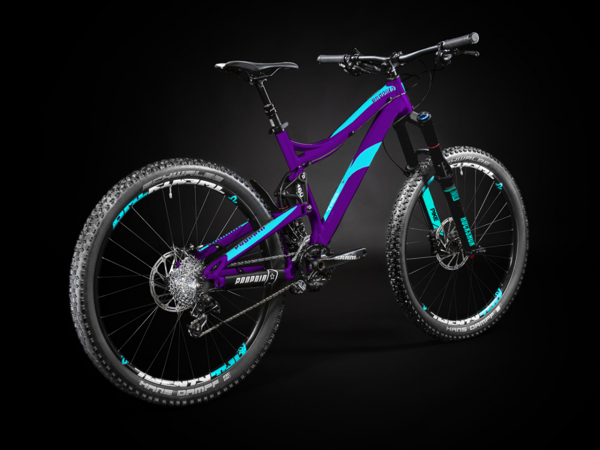 Hab grad ein bisschen rumgespielt. Wäre das so machbar? Also Gabel in lila und die restlichen Decals in dem türkis, das du vorhin an der Gabel verwendet hast.