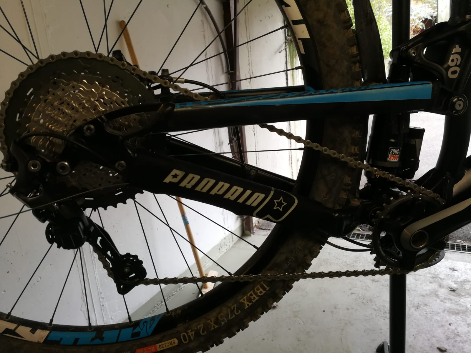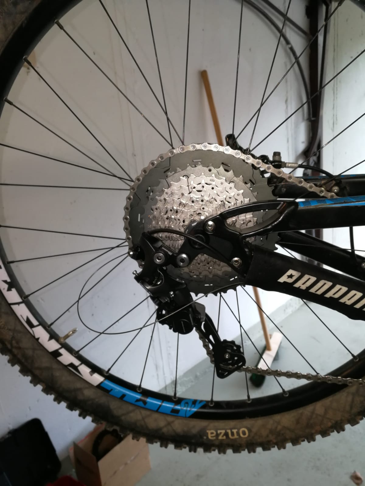 Problem ist nun, dass das größte 46ger nun echt schlecht läuft. Zunächst dachte ich die Kettenlinie ist zu "schräg" und habe den von ProPain verbauten Spacer an der Kurbel (2mm) entfernt. Sagenhafte Verbesserungen gabe es hier nicht ... (aktuell ist eine SLX-Kurbel mit 30ger XT KT DirectMount verbaut).