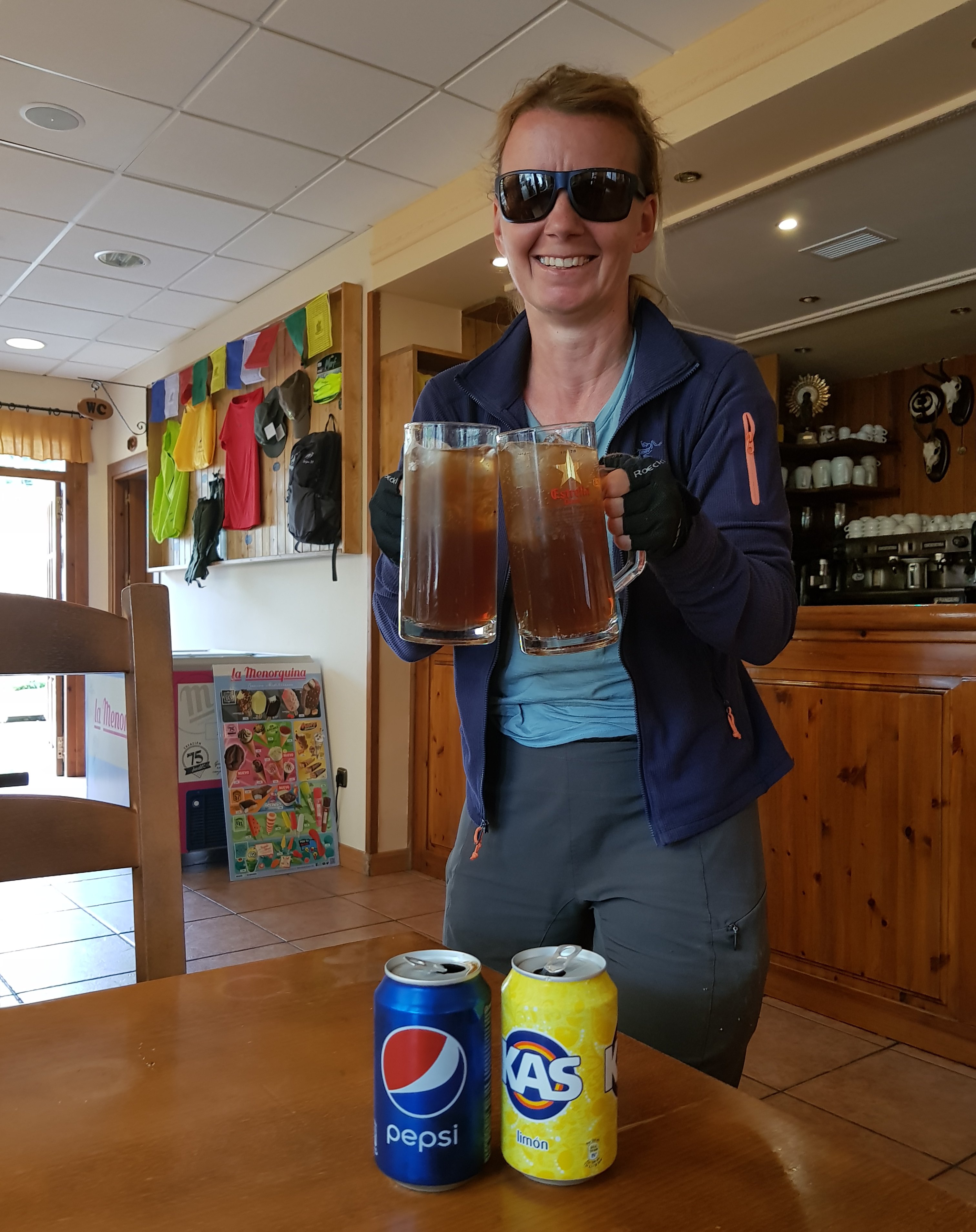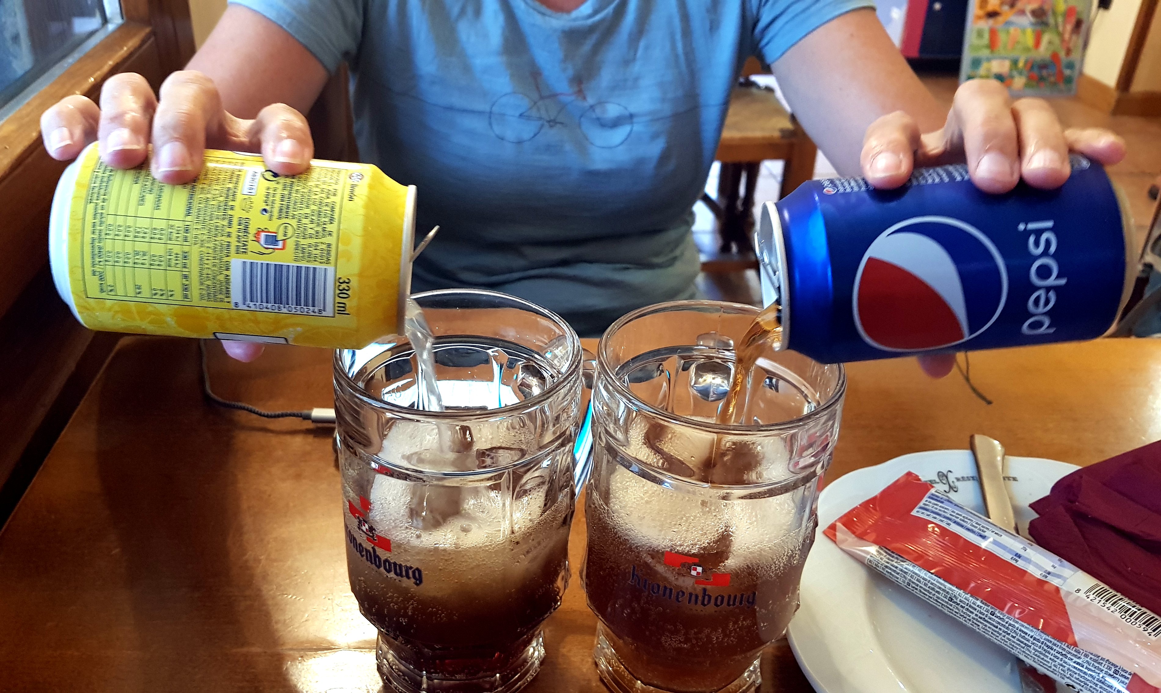In Nerin in der Bar Palazolo: noch viel hübscher. Wir mixen insgesamt drei Liter Spezi. Kas Limon und Pepsi... passt.