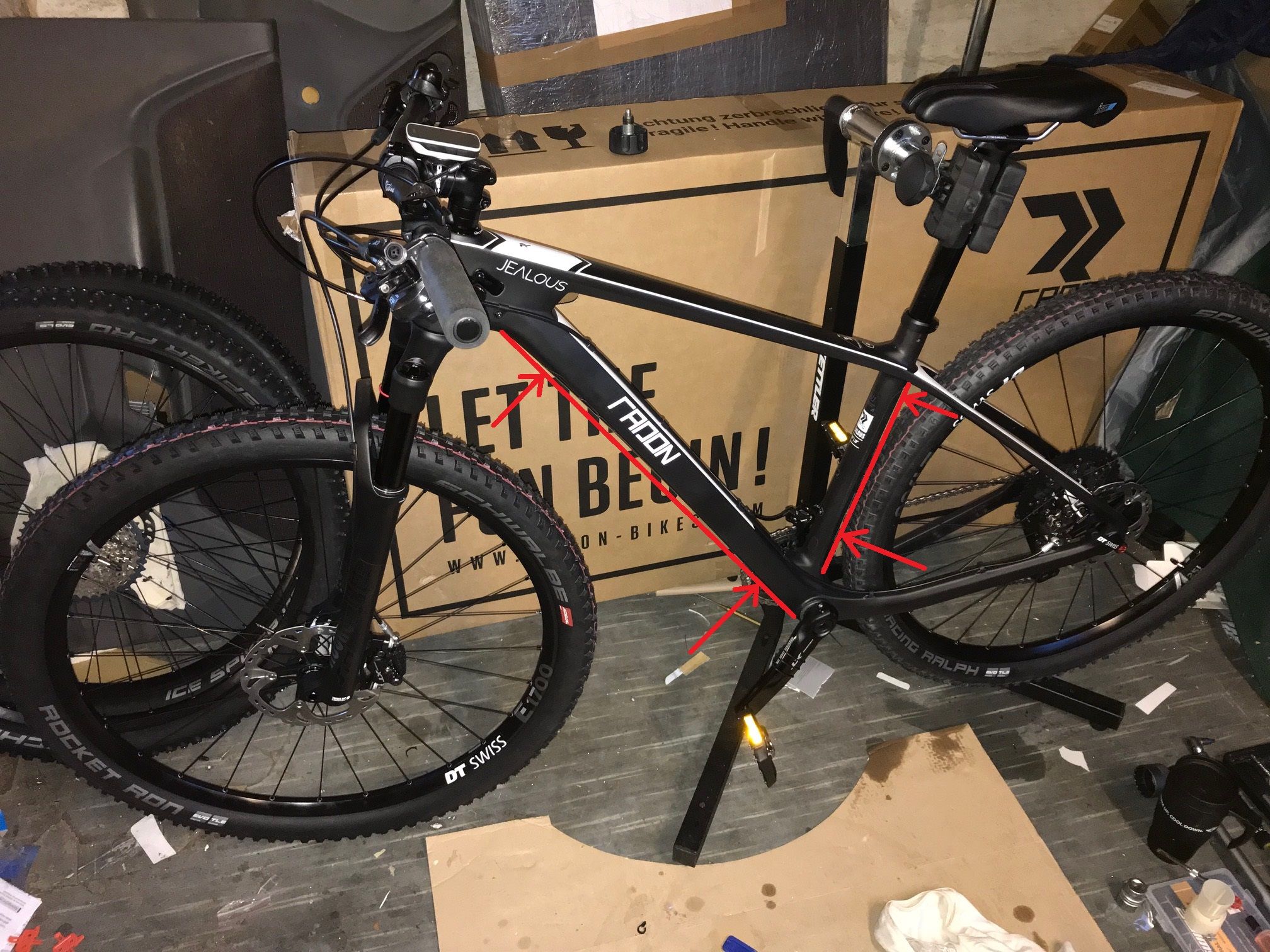 Frage an die Andere hier: klebt ihr eure Carbonrahmen auch an den Stellen ab? Ich hätte jetzt erwartet, dass ich mit dem Rad so fahren kann und der Rahmen Steinschläge etc. aushält.