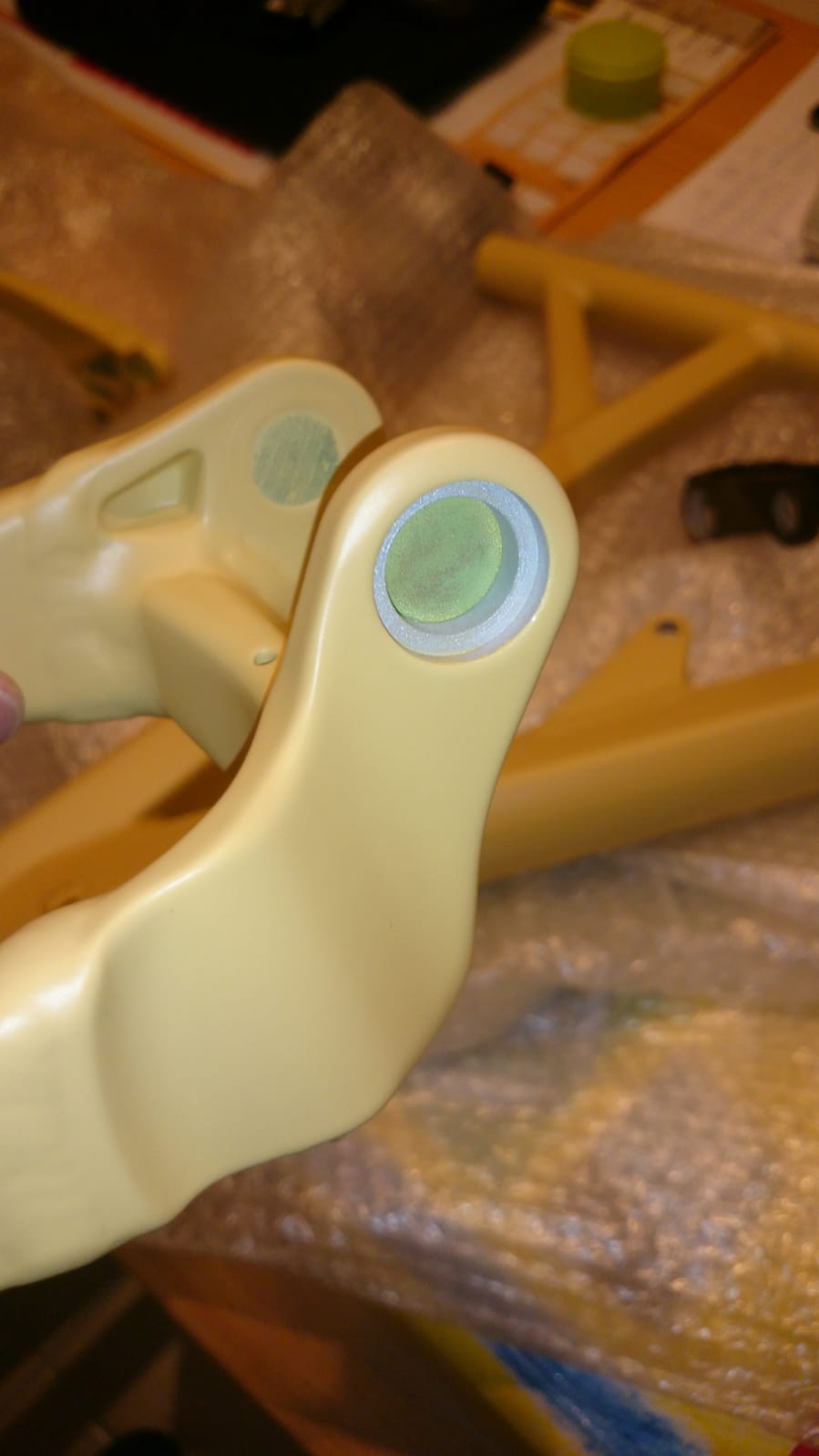 Über die Grundierung ein Silber lackiert.