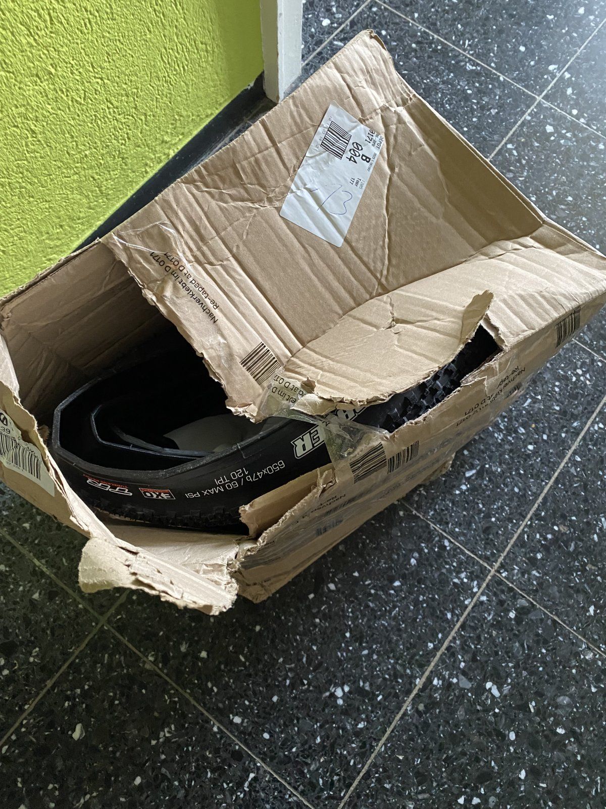 Das „Nachverklebt in …“ - Klebeband ist ja auch unbedingt notwendig gewesenHeute nachdem das Paket 5 Tage lang durch Essen gefahren wurde hat sich endlich einer getraut es mir vor die Tür zu schmeißen. Die Vermutung wurde bestätigt, sieht aus wie überfahren.