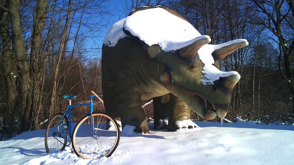 Nun hat der Rahmen aber eine etliche laaaaange Geschichte. Das Baujahr ist '73 - wie ich - und er wurde von Niemann in Zerbst '88 neu aufgebaut und im DDR-Bahnsport verwendet. Herr Niemann hat Diamant-Bahn-Rahmen genommen, die alle RH60 hatten und neues Ober-, Unter-, Steuerrohr & Muffen verwendet, um die Rahmen kürzer und kleiner und somit sprintfreudiger zu gestalten. Soviel zur Geschichte...