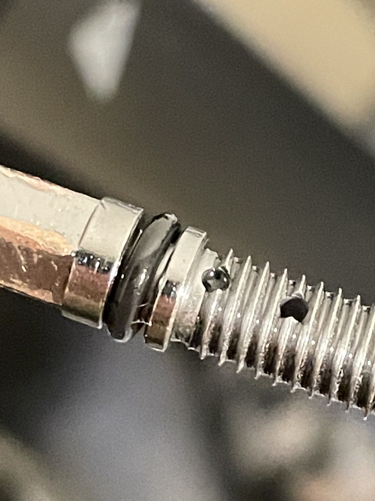 Der Hebel läuft ohne Öl butterweich. Hab schon wieder alles zusammengeflickt.Das weiße sind die Stützringe, die haben immer einen Schnitt. Das muss so.