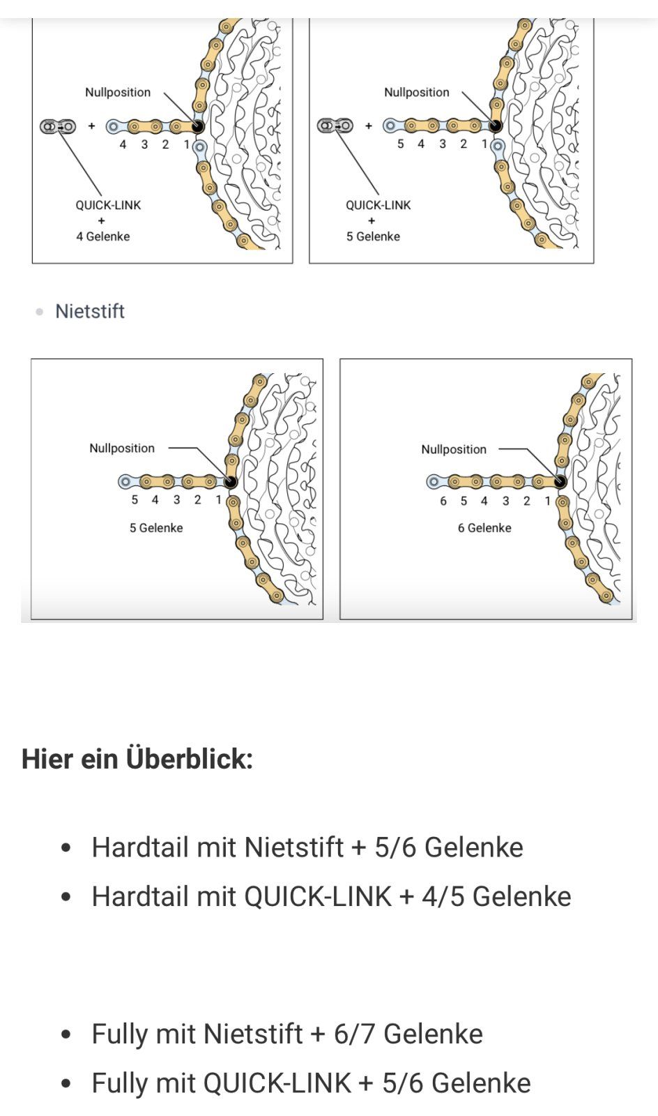 Shimano gibt 4 bzw. 5 Glieder vor + Link. 5 bzw. 6 bei Nietstift.Moin.