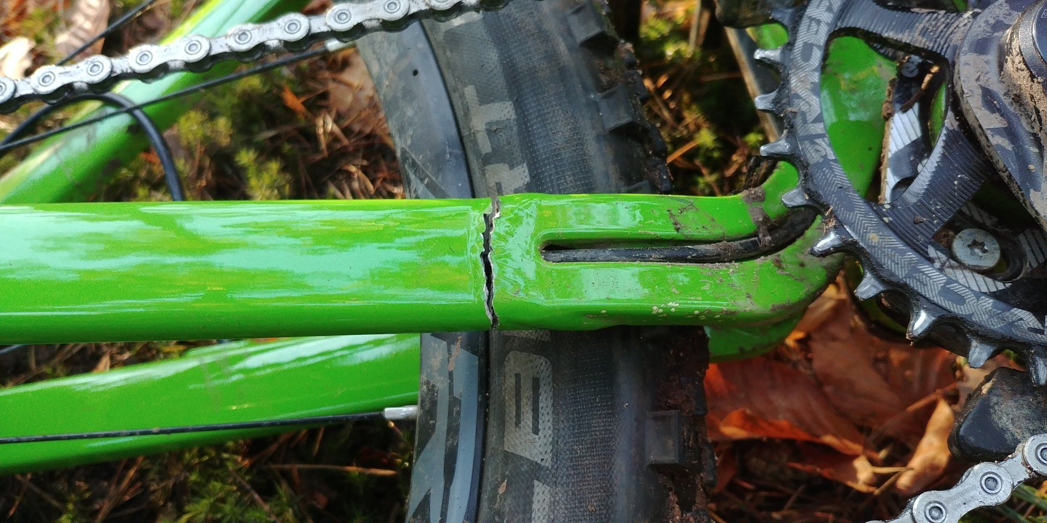 DT Swiss Felgen), als mir letztes Wochenende tatsächlich der Rahmen gebrochen ist (Kettenstrebe ist durch) - beim bergauffahren!