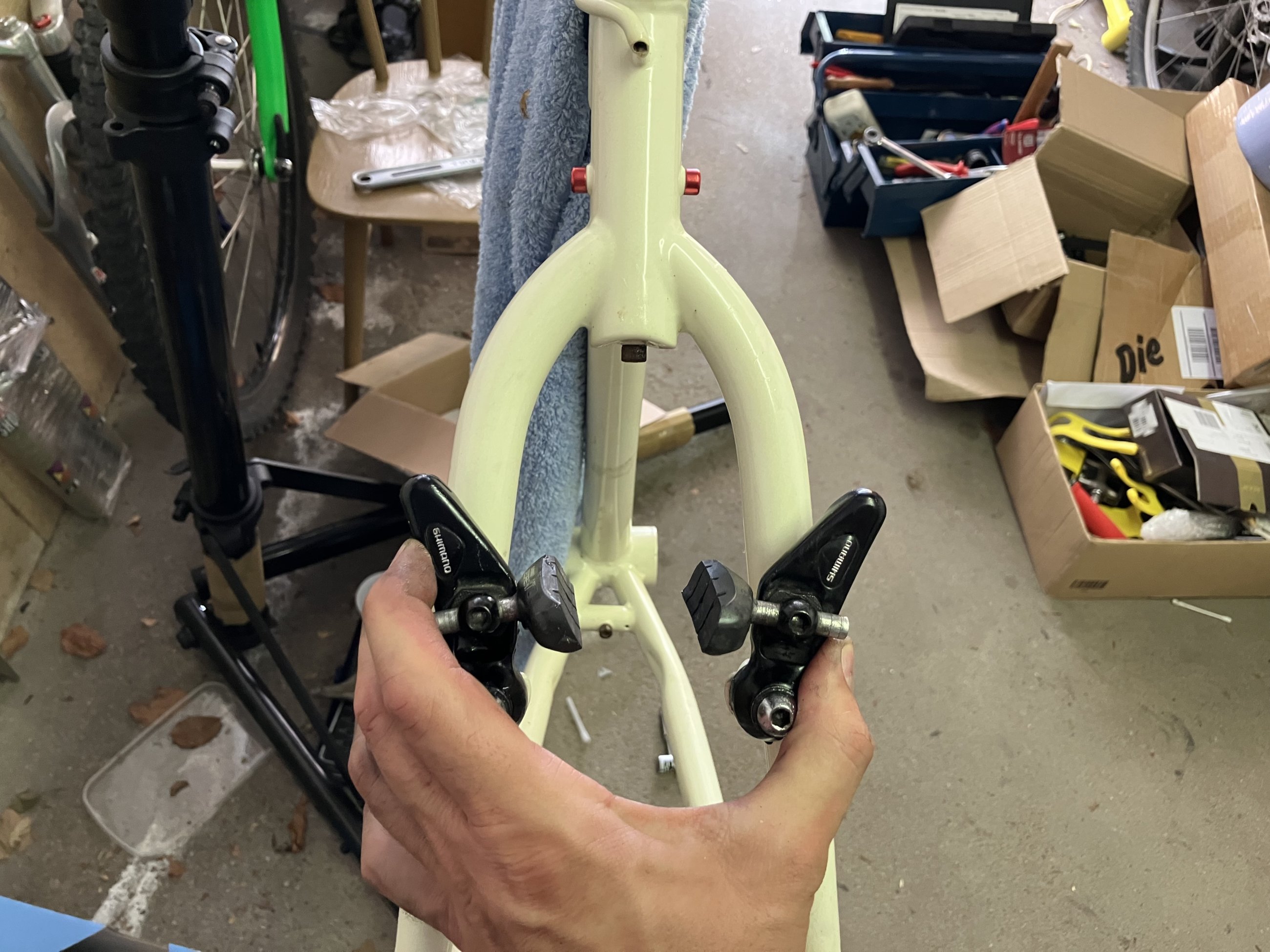 Besten Dank, klingt auch alles absolut vernünftig! Allerdings habe ich das Problem, dass ich praktisch jetzt schon wissen muss, ob das hier weitergeht oder nicht. Ansonsten kommen die Komponenten nämlich an ein anderes Projekt. Cirrus!Ja, oder schraub doch zwei schöne stabile Haken an die Garagenwand, hänge es hin und widme Dich dem Bike wieder, wenn der Ärger verflogen ist. Macht ja keinen Sinn, mit Brast dran zu schrauben. Soll doch Spaß machen. Du hast ja genug andere Räder zum Weiterschrauben.