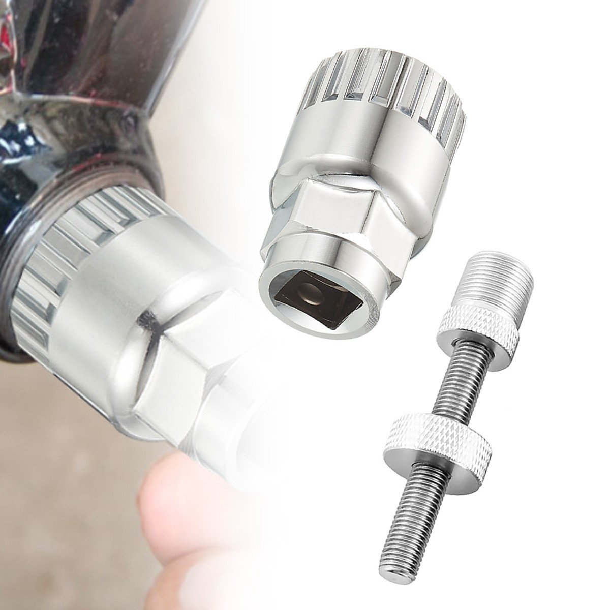 Kurbelschraube und Unterlegscheibe mit dem bereits vorhandenen Werkzeug würde (preiswert) auch gehen.Anhang anzeigen 2268358Zur Erläuterung: Wenn man so ein Schräubchen zum Fixieren des Innenlagerschlüssels verwendet, kriegen sogar so Schwächlinge wie ich jedes Lager 'raus. Man kann dann nämlich schön lange Hebel am Schlüssel verwenden, ohne abzurutschen. (Was bei der Schraubstockmethode schon ganz gut, aber noch nicht perfekt ist.)![]()