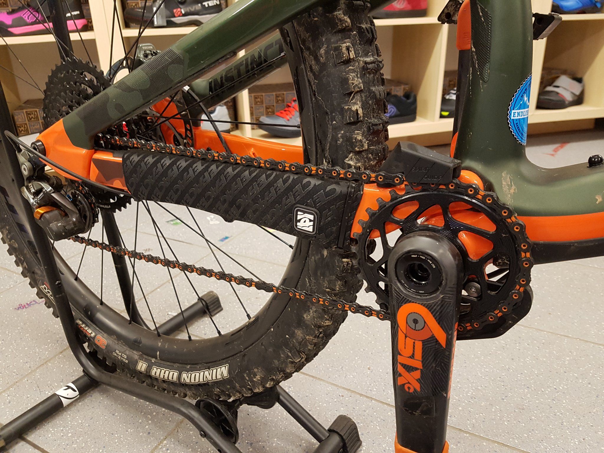 Habe gerade an meinem Instinct Alloy 70 am kleinsten Ritzen einen Abstand Kette zu Strebe (auf der sich ein fast 1/2 cm dicker Schutz aus festem Gummi befindet) von ~1,3 cm am kassettennahen Bereich der Kettenstrebe gemessen, der Richtung mitte bei 1,5 cm liegt und zur Kurbel ansteigt.