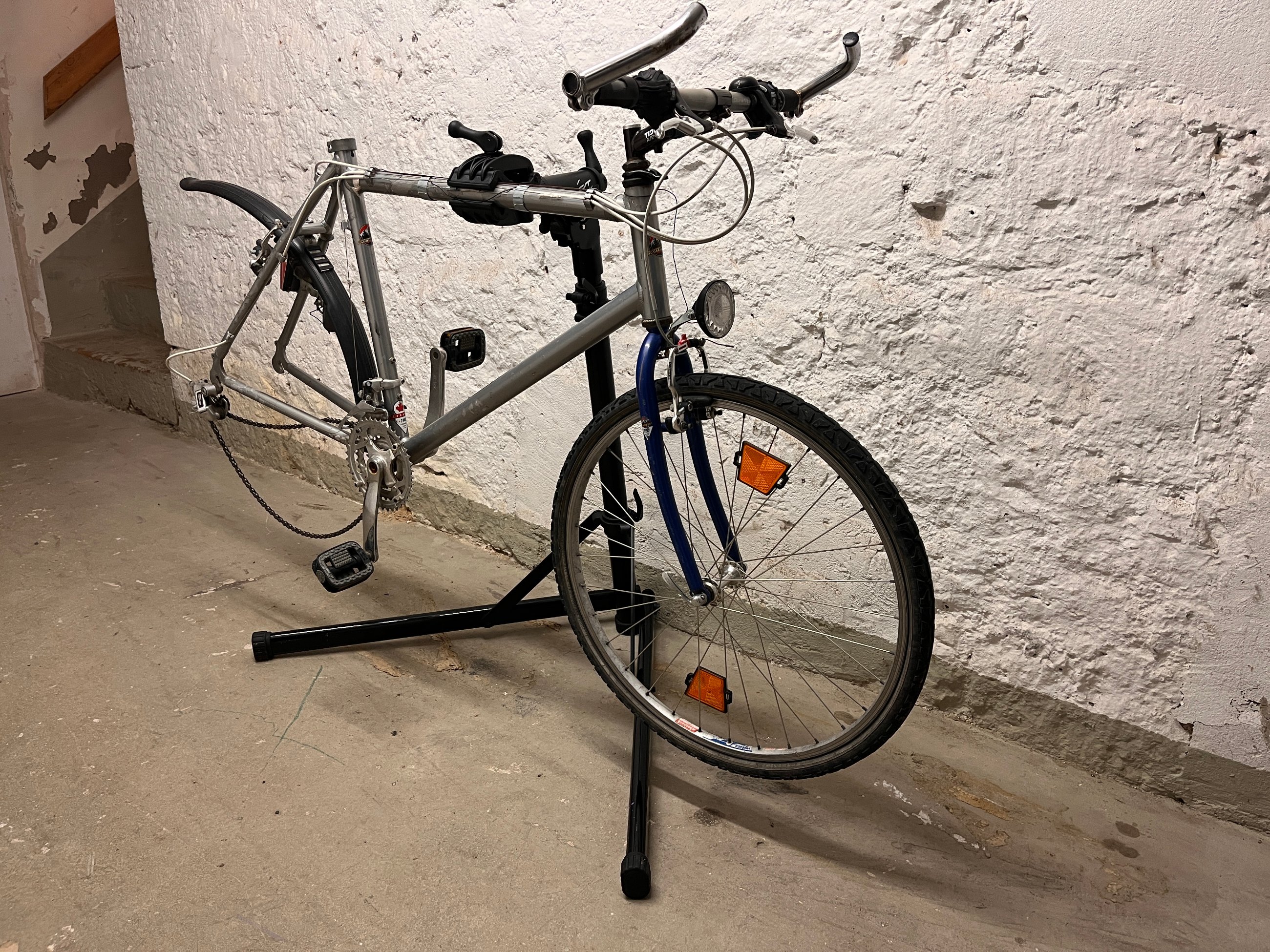 Hallo @Thogarma, Glückwunsch zum Aufbau! Mir ist die Tage ein RM Stratos 1993 mit Starrgabel zugelaufen, über das ich ein halbes Jahr nachdenken darf/muss: Ich habe es in der hiesigen Fußgängerzone ohne Schloss, Hinterrad und Sattel/Sattelstütze vorgefunden und ganz brav dem Fundbüro gemeldet. Nach sechs Monaten geht es gegen eine Verwaltungsgebühr von 5€ in meinen Besitz über, wenn sich bis dahin der rechtmäßige Besitzer nicht meldet.