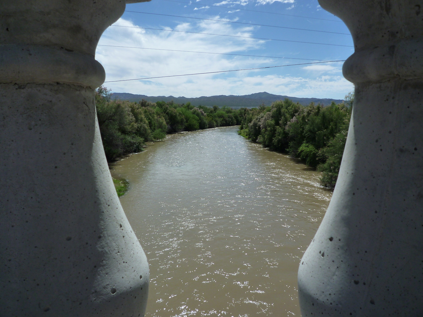 Nach der Besänftigung meiner Flüssigkeitsgelüste kurble ich ein Stück den Highway 77 hinauf ins Nest Winkleman. Dort gibts wenigstens einen kleinen Laden mit Mofaflickzeug, vielleicht kommt ich damit auf einengrünen Zweig.