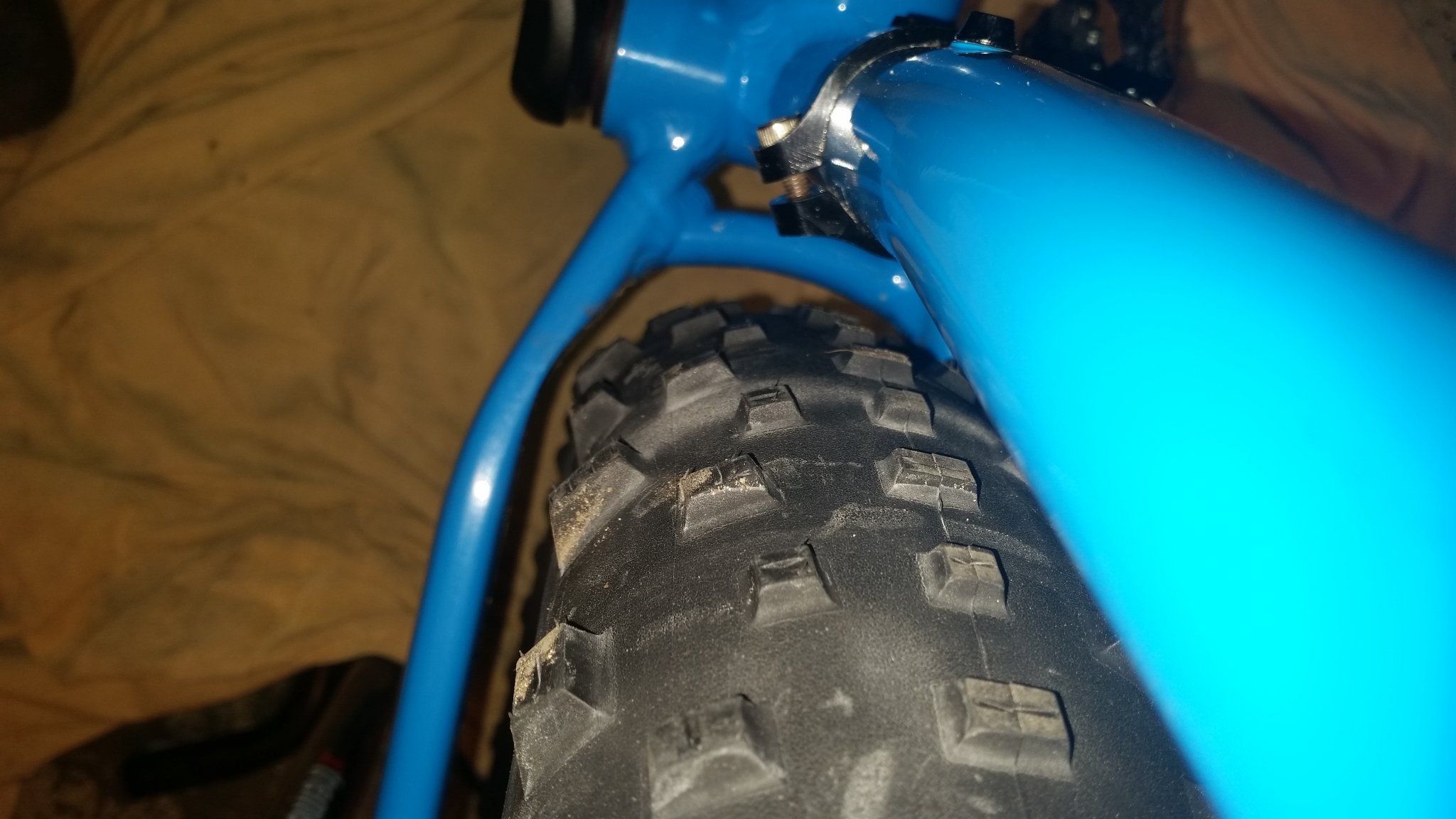 Hatte vorgestern mal kurz einen 4,8er JJ mit Schlauch im HR. Leider läuft der Reifen nicht ganz rund - aber auch mit weniger Schlenkern wär der Abstand zu den Kettenstreben schon arg knapp.