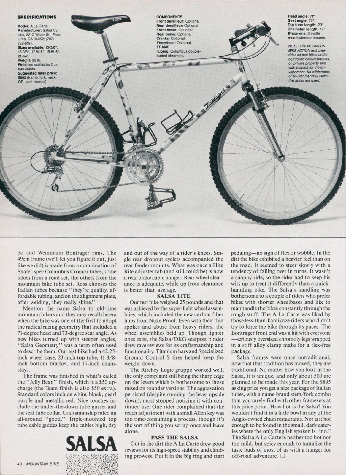 Hat jemand ein Bild dieser einen BIKE-Ausgabe mit dem Artikel über US Bikes gespeichert, in dem neben Yeti, Mountain Goat, Ibis, Brave auch ein Salsa A La Carte gezeigt wurde? Und könnte das hier posten?