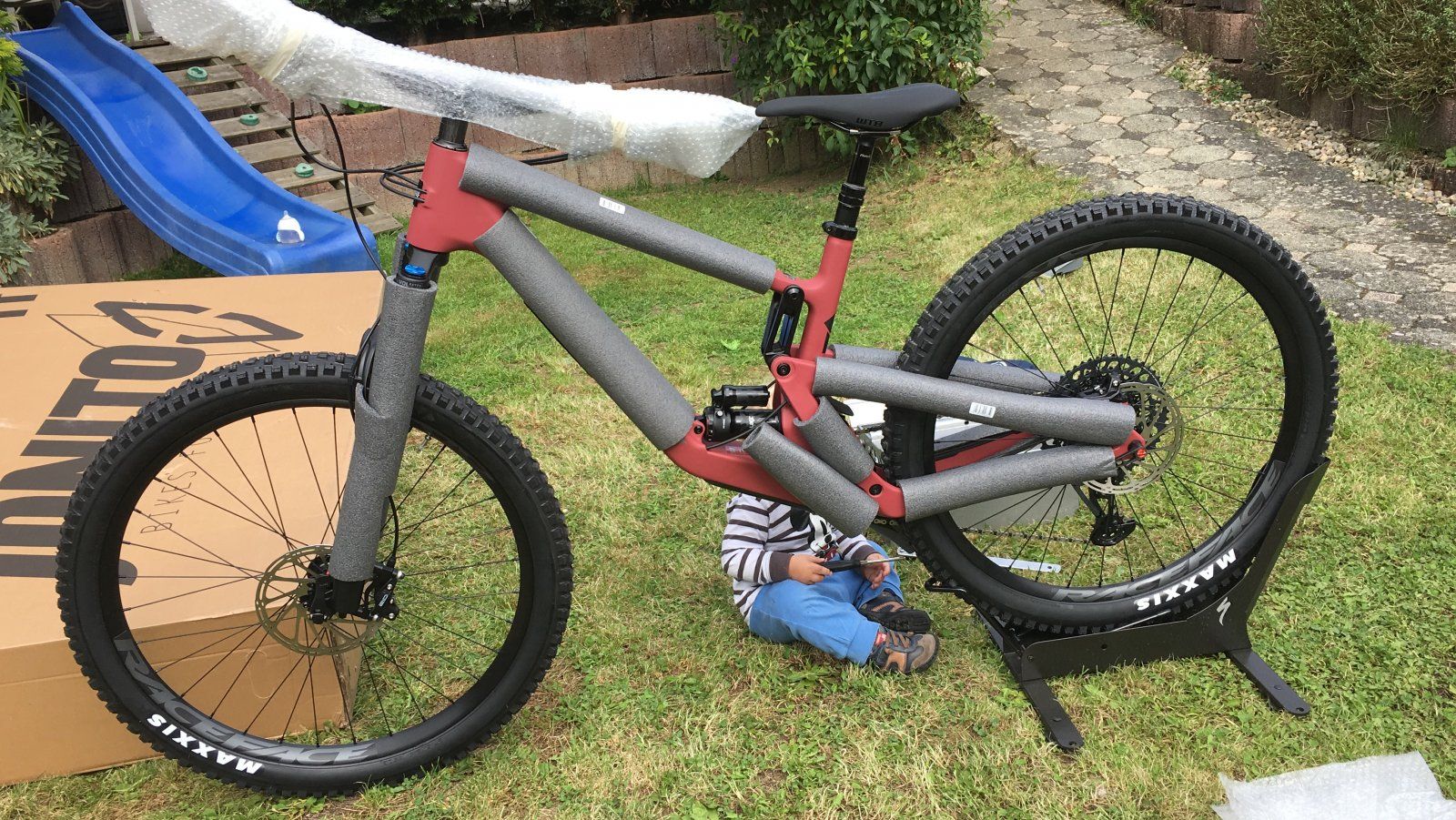 Angekommen und Junior fand Werkzeug in Kombination mit dem Bikeständer interessanter. Gut so, dann hatte ich meine Ruhe. :D