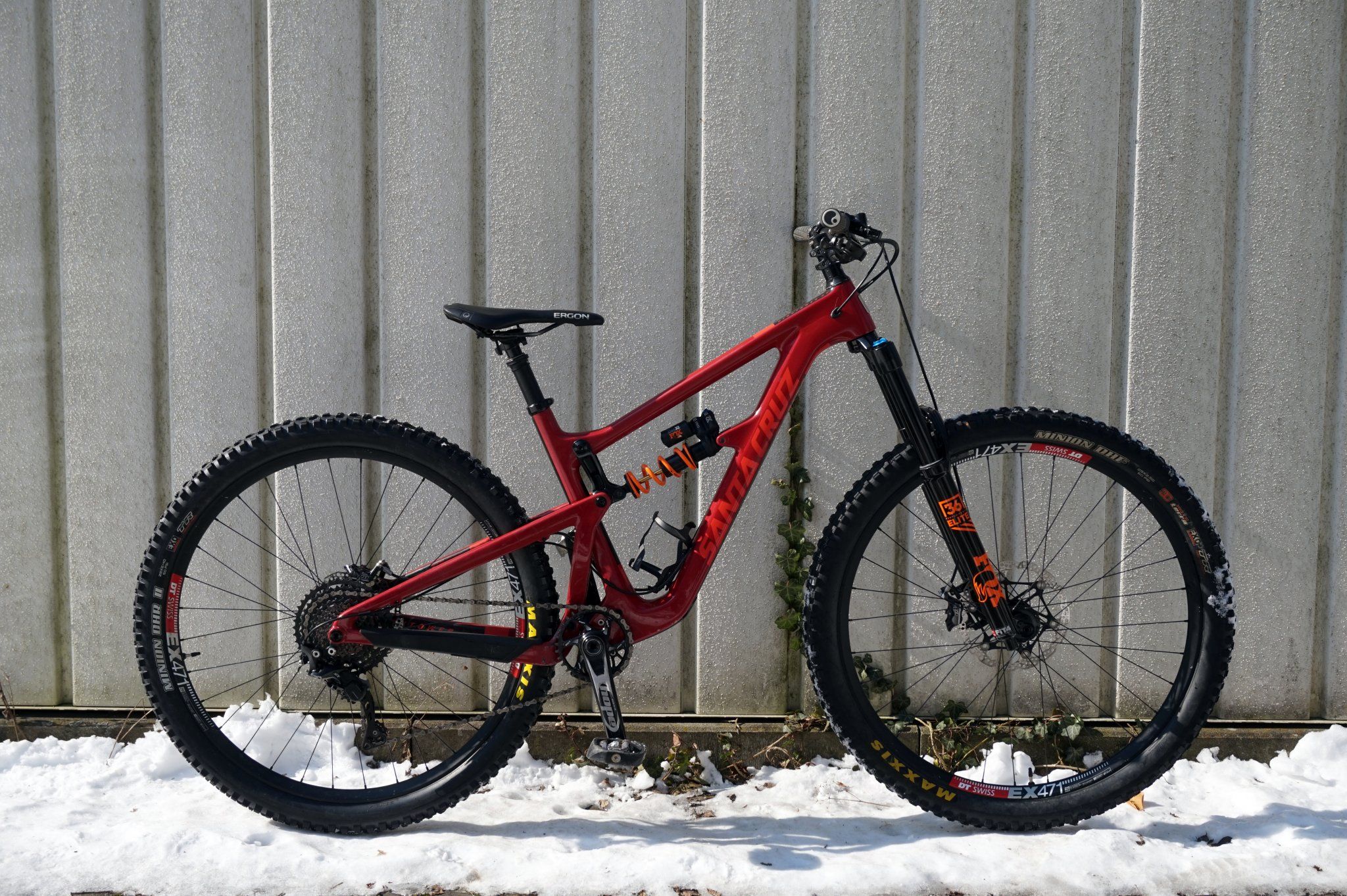 Danke. Ja ist Größe M und ja ich fahre ihn mit 57mm Hub. Da ich mein Fahrwerk eigentlich recht hart und straff hab kommt es eigentlich nicht zum Reifenkontakt. Bei 2-3 Einschlägen waren schonmal Reifenspuren am Sattelrohr. Aber das ist echt selten und eigentlich kann nicht mehr passieren.Schöner Aufbau! Ist das Größe M? Fährst du den Dämpfer mit vollen 57mm Hub? Wie passt es bei vollem einfedern und welchen Reifen hast du hinten?