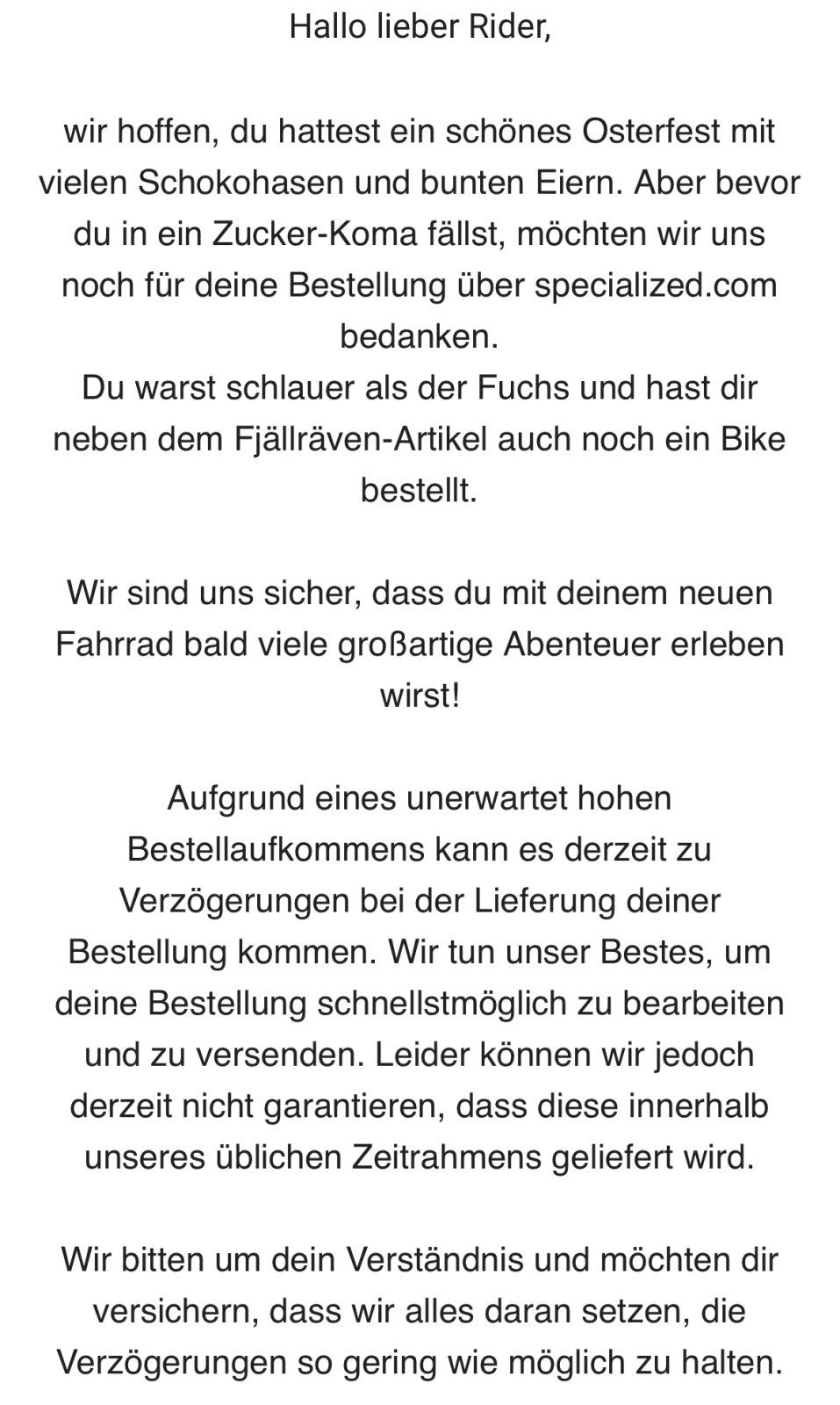 Ich denke Speci kann aufgrund des Händler Systems ja nicht einfach so in ihrem online shop ne 30% Rabattschlacht starten, das würde sicher für Unmut sorgen. Und ups passiert ein doofer Gutschein Fehler der auf my Dealz und sonstigen Plattformen gepostet wird. Lagerräumung - ✅ :awesome: