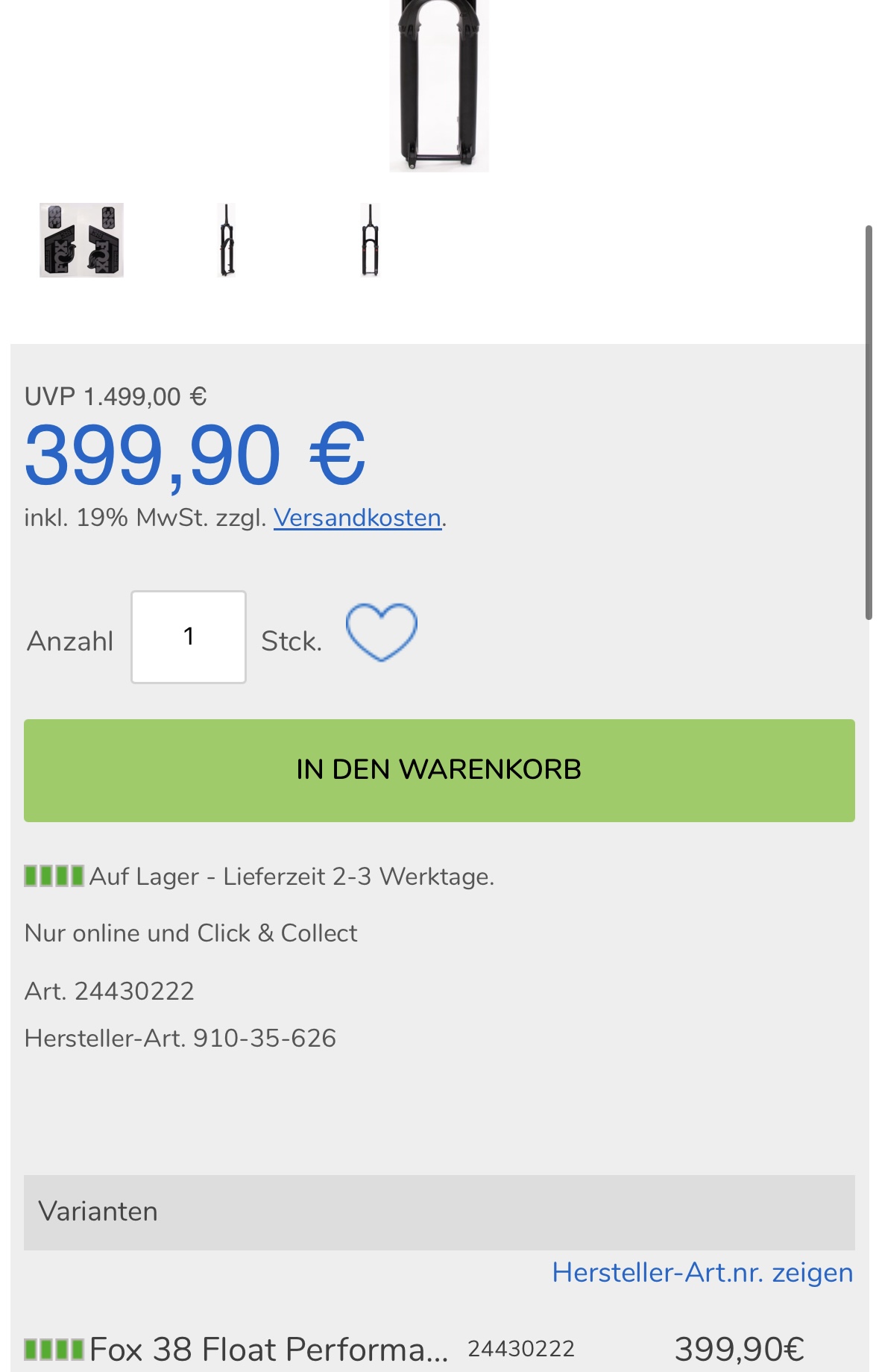 Wenns nicht unbedingt Kashima-blingbling sein muss hat Hibike ein passendes Angebot für 349€Lässt sich die Fox 36 Factory von Propain auf 160mm oder 170mm umbauen?