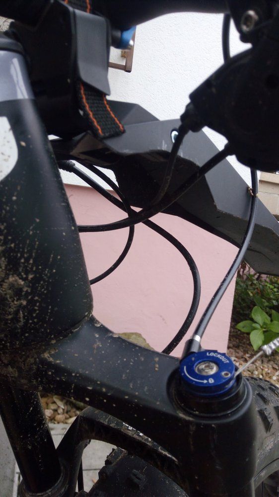 aubacke....nen Schönheitspreis gibts dafür aber nicht...und dann noch den Lenker mit Rise nach unten montiert ...Als einigermassen funktionierende Lösung habe ich 2x SKS Grand M.O.M und 1x SKS Grand D.A.D. umgebastelt.