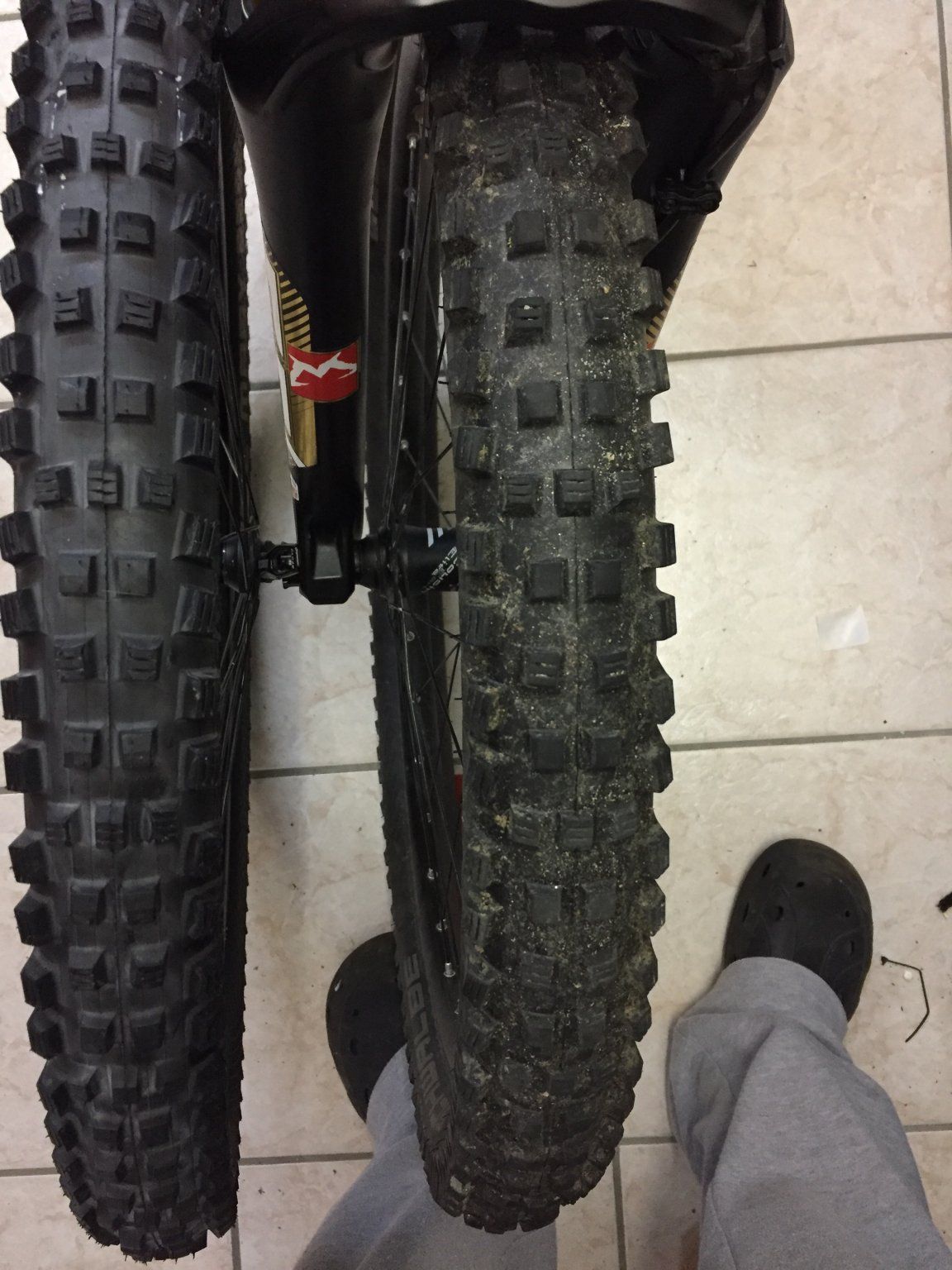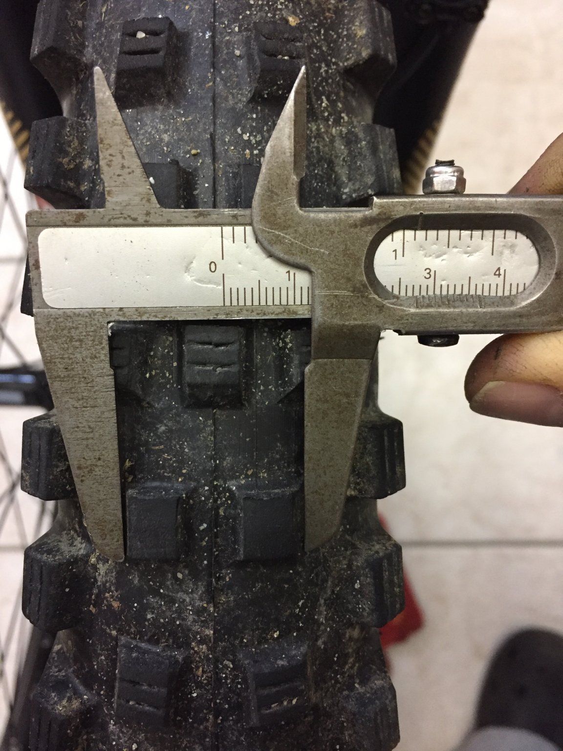 meine MM SG 2,35 ist deutlich schmaler als die andere am zweiten Rad. Auf dem letzten Bild sieht man das ganz schön, die Breite der Stollen differiert um 7mm. Nach ein paar Tagen waren es noch 6mm.