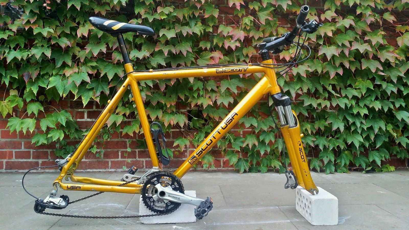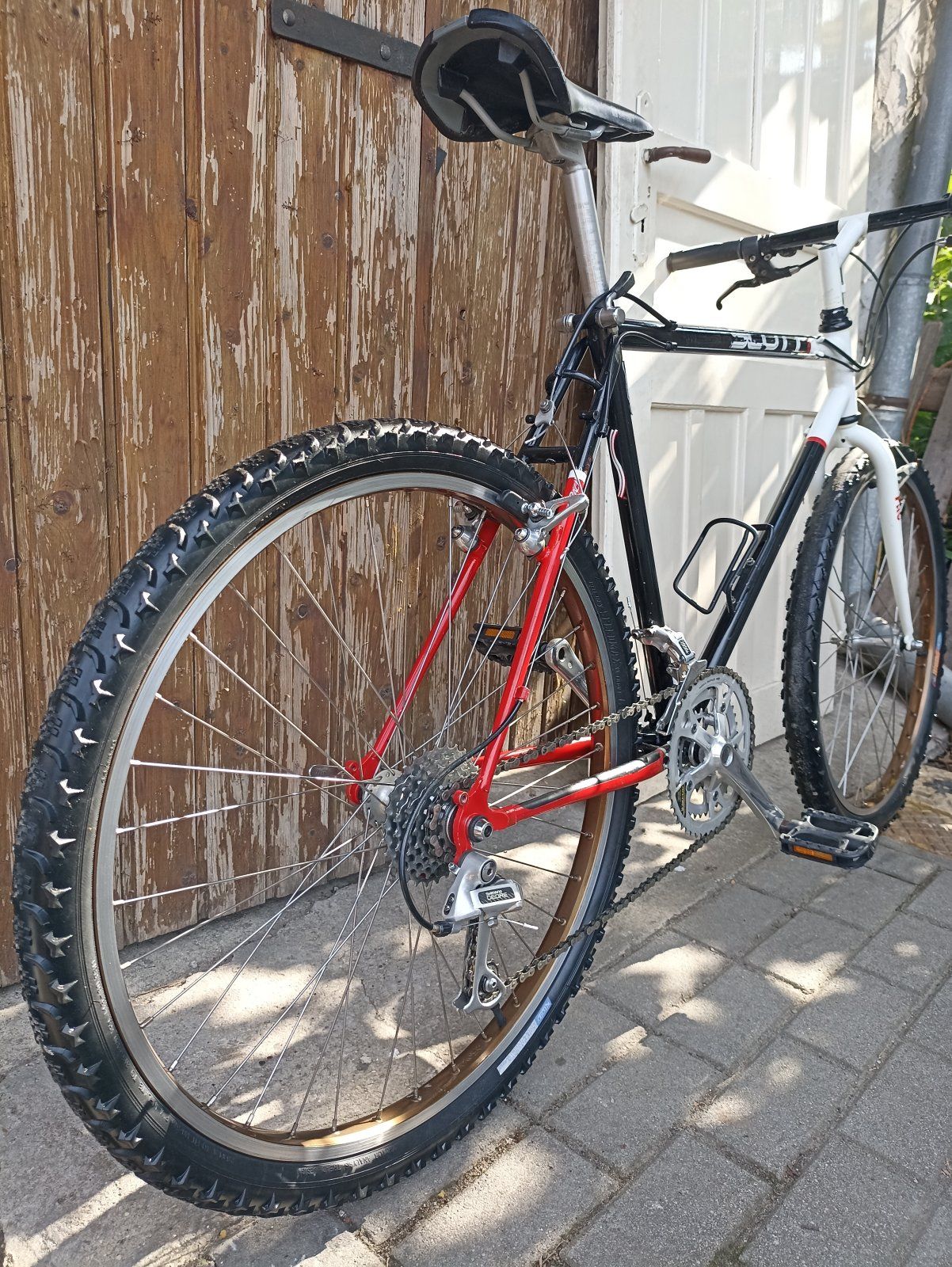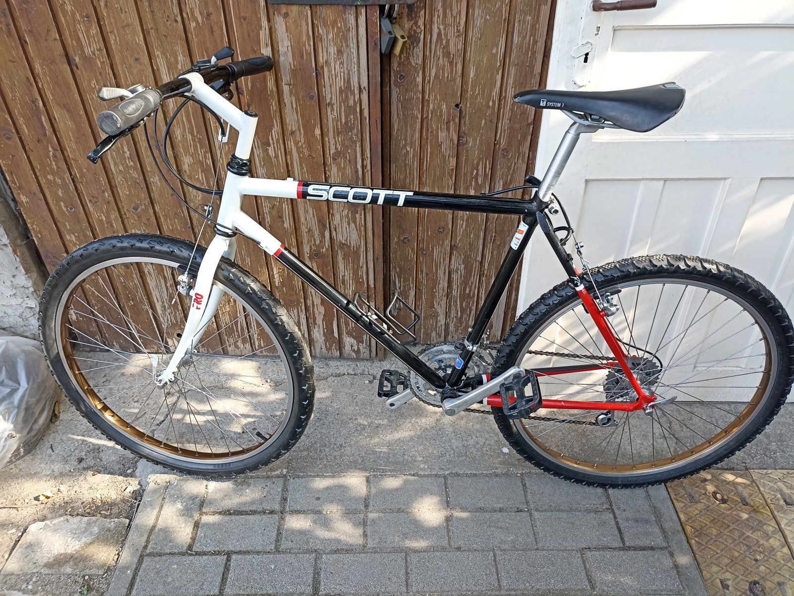Hier mein heutiger Kauf, da wird sich noch einiges ändern, aber meine Frage an die Scott-Freunde: hat wer einen Katalogbild dazu? Ich konnte das Rad bisher irgendwo finden. Es ist wohl so 1988/89, „Made in Japan“, Alu, trotz des Prestige Aufklebers. Gruß aus Wien, Peter
