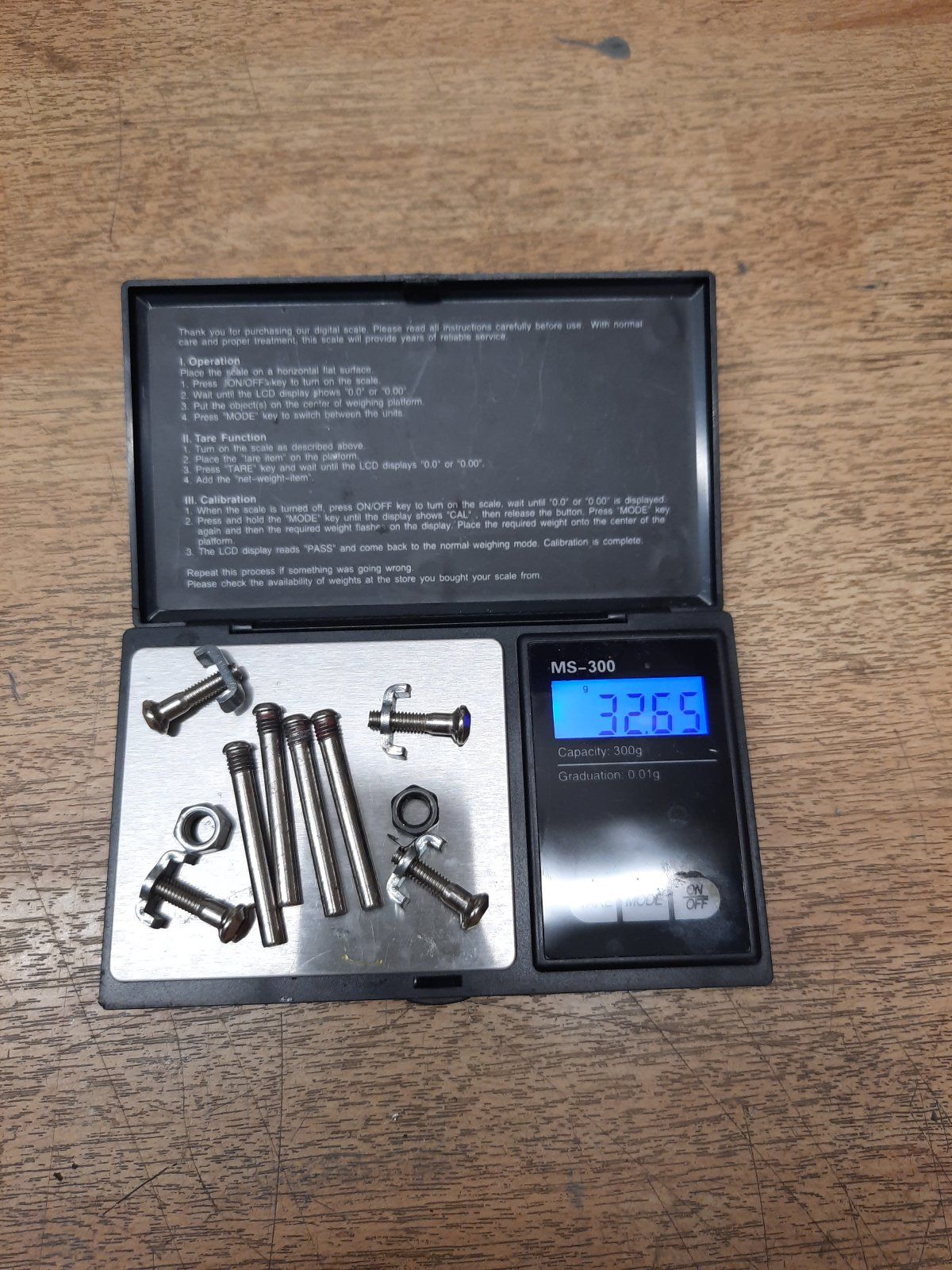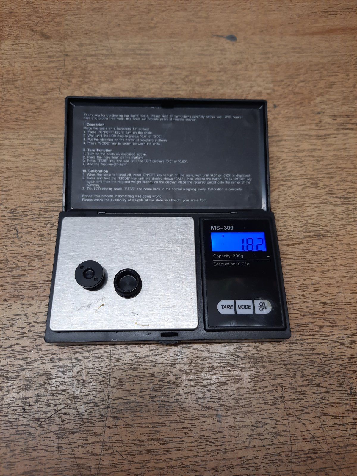 Einmal komplettes Alu Tuning mit entkappen aus Kunststoff. Wiegen original zwischen 206 und 215 gramm.