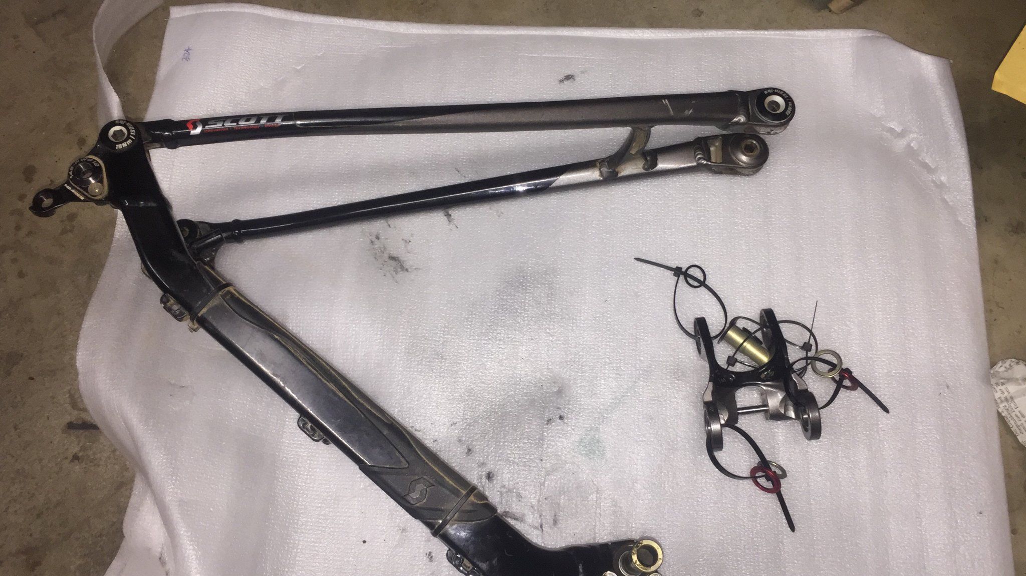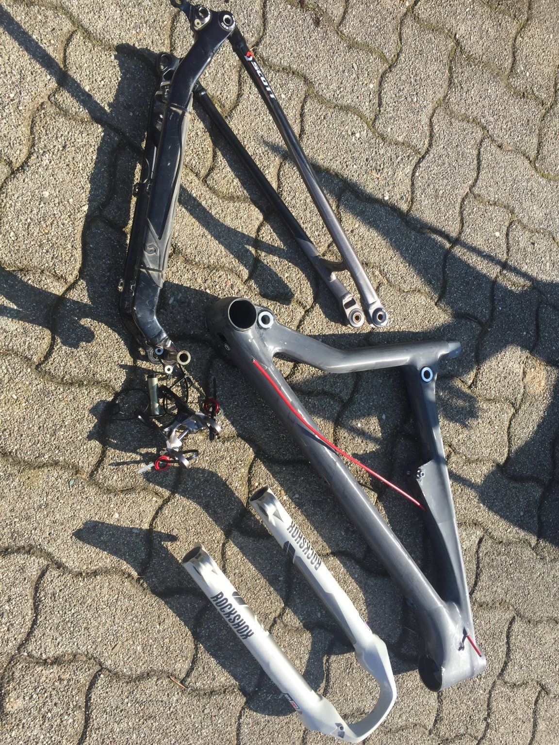 Als Basis dient ein Scott Spark 910 Rahmen mit Alu Hinterbau, falls sich eine Gelegenheit bietet würde ich den Hinterbau gerne umrüsten.