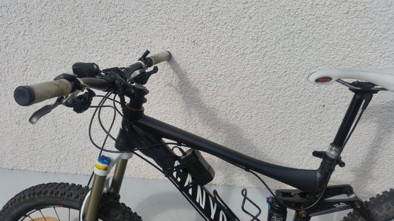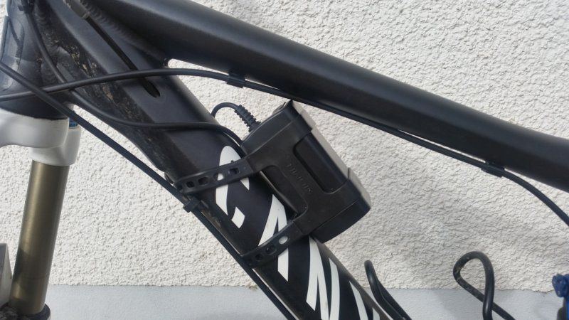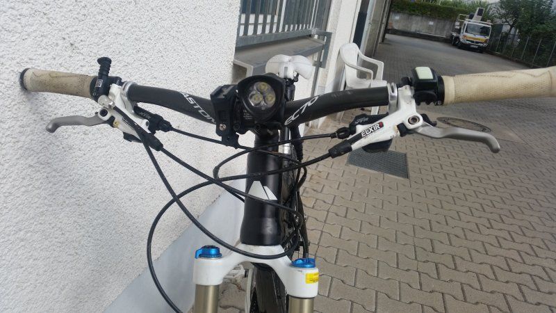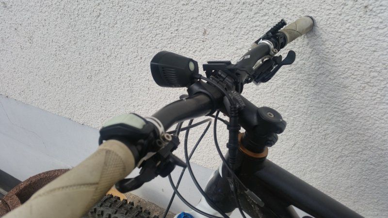 Der Lampenkopf ist mit drei Cree LED (nicht genauer angegeben) bestückt und liefert 2000 Lumen. Nicht besonders groß und in dem matten schwarz sehr unauffällig auf meinem MTB. Die Fernbedienung ist in zwei Felder unterteilt.