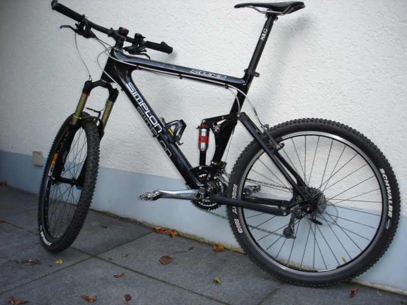 habe mir vor enigen Wochen ein Stomp aufgabaut (wie Lexx, nur mit Carbonrahmen): HVR 200, Manitou Minute 3, Hügi/517, Nobby Nic, XTR und
