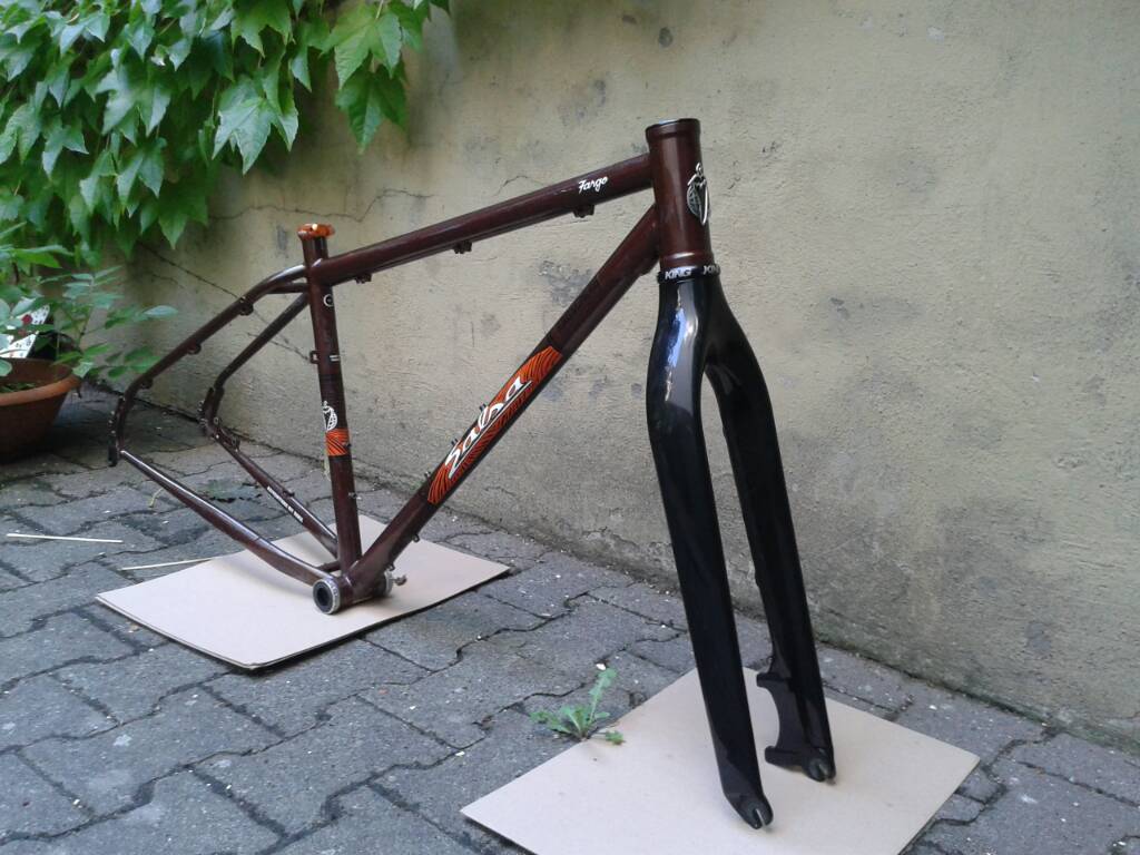 Neue Farbe, alte Gabel (140mm) in Rahmenfarbe ist der primäre Weg.....die Suntour oder spätere Carbongabel sind noch Spielchen....muss aber sagen dass der Umstieg von 140mm auf 100mm Federweg sich gut anfühlen von wegen Sitzhaltung beim Fahren und die Verspieltheit des Rahmens ist noch vorhanden.