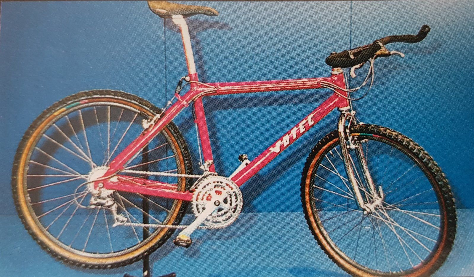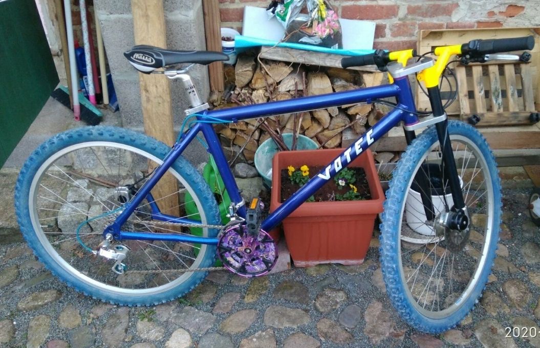 Ich hab dann auch gleich bissl recherchiert aber leider bis heute den Produzenten des Rahmens nicht ausfindig machen.Mehrere Quellen sagen das es wohl eine Kleinserie war um den Verlauf und PR der Sachs New Success und Powerdisc anzukurbeln.Viel gemacht hab ich nicht,bissl Lackpflege,schwarze Stütze und andere Reifen.
