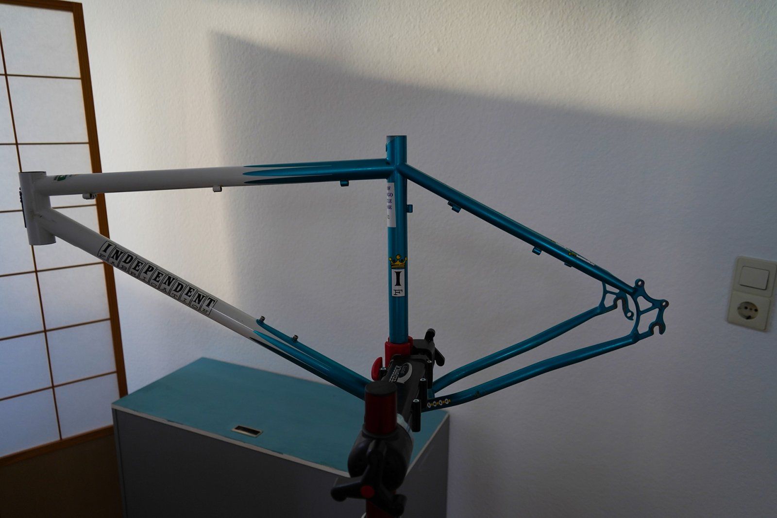 Mit originaler Rahmenkarte mit Unterschriften der Indy Fab Jungs und der Rahmennummer (stimmt mit der Nummer am Innenlagergehäuse natürlich überein)