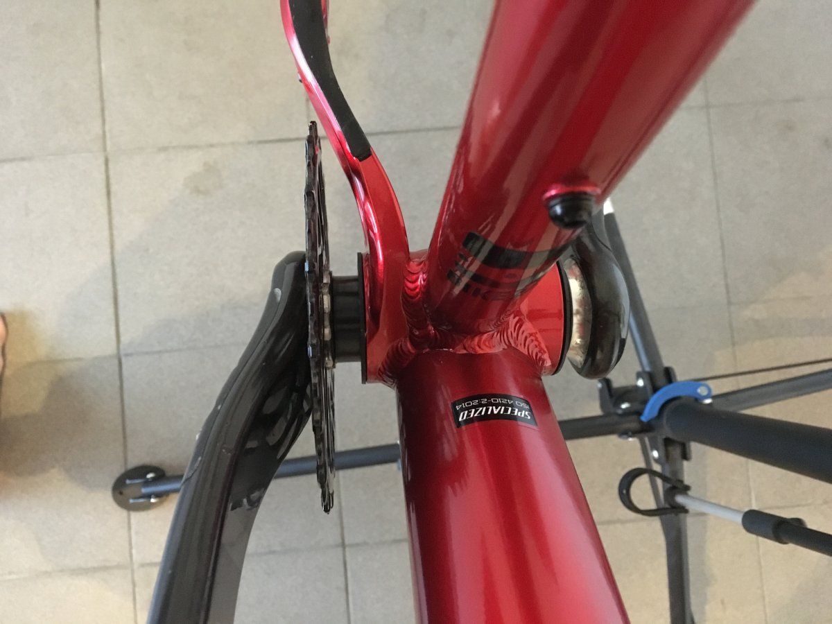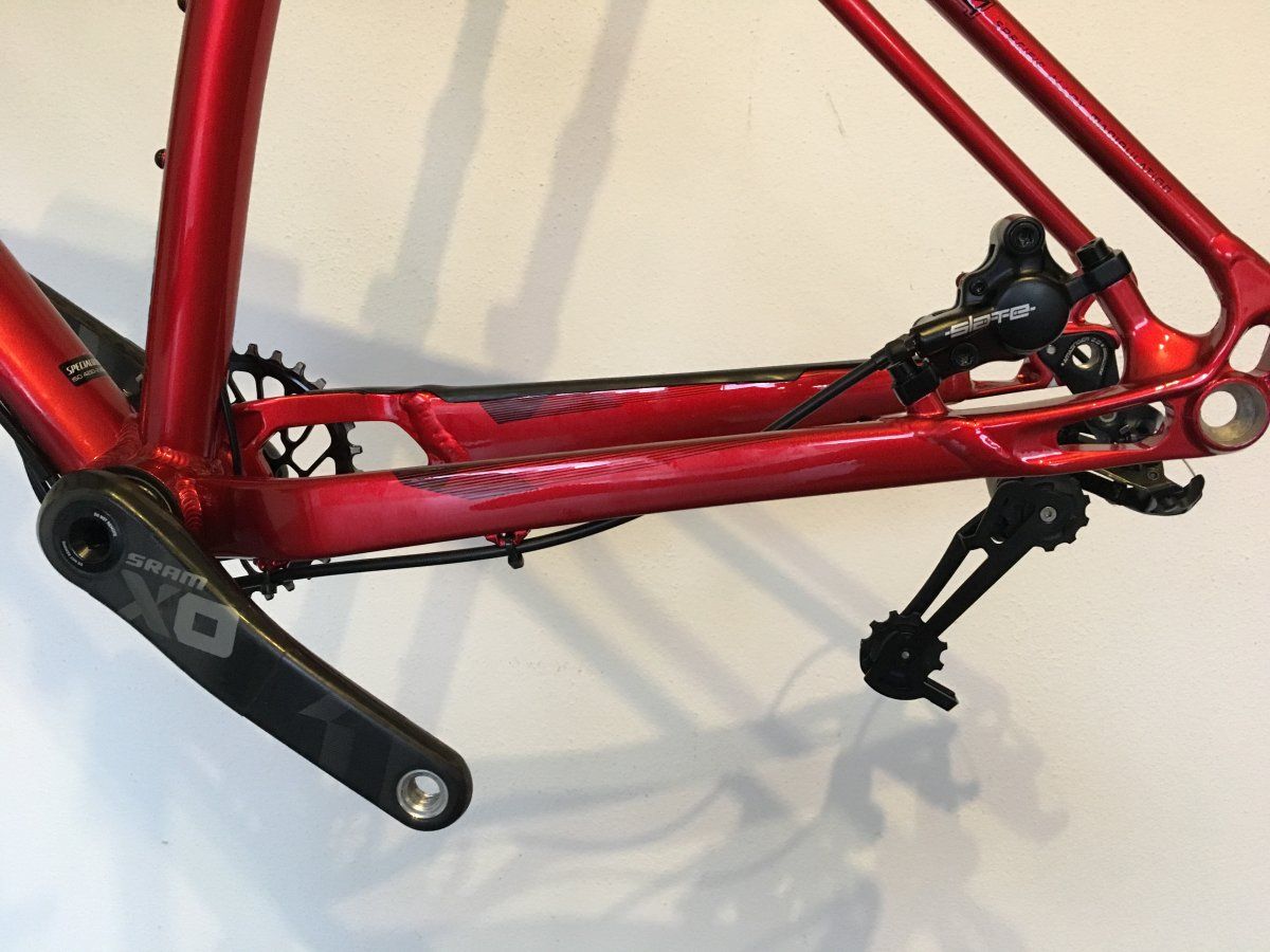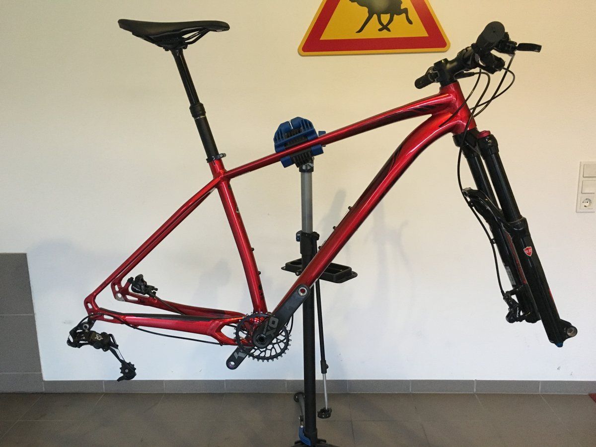 Die Kurbelmontage hat etwas gedauert... Beim den Stout-Kurbeln des Comp war ein 9 mm Spacer auf der Antriebsseite und ein 15 mm Spacer links. Der linke Kurbelarm stand ein paar mm weiter von der Kettenstrebe ab als der rechte.