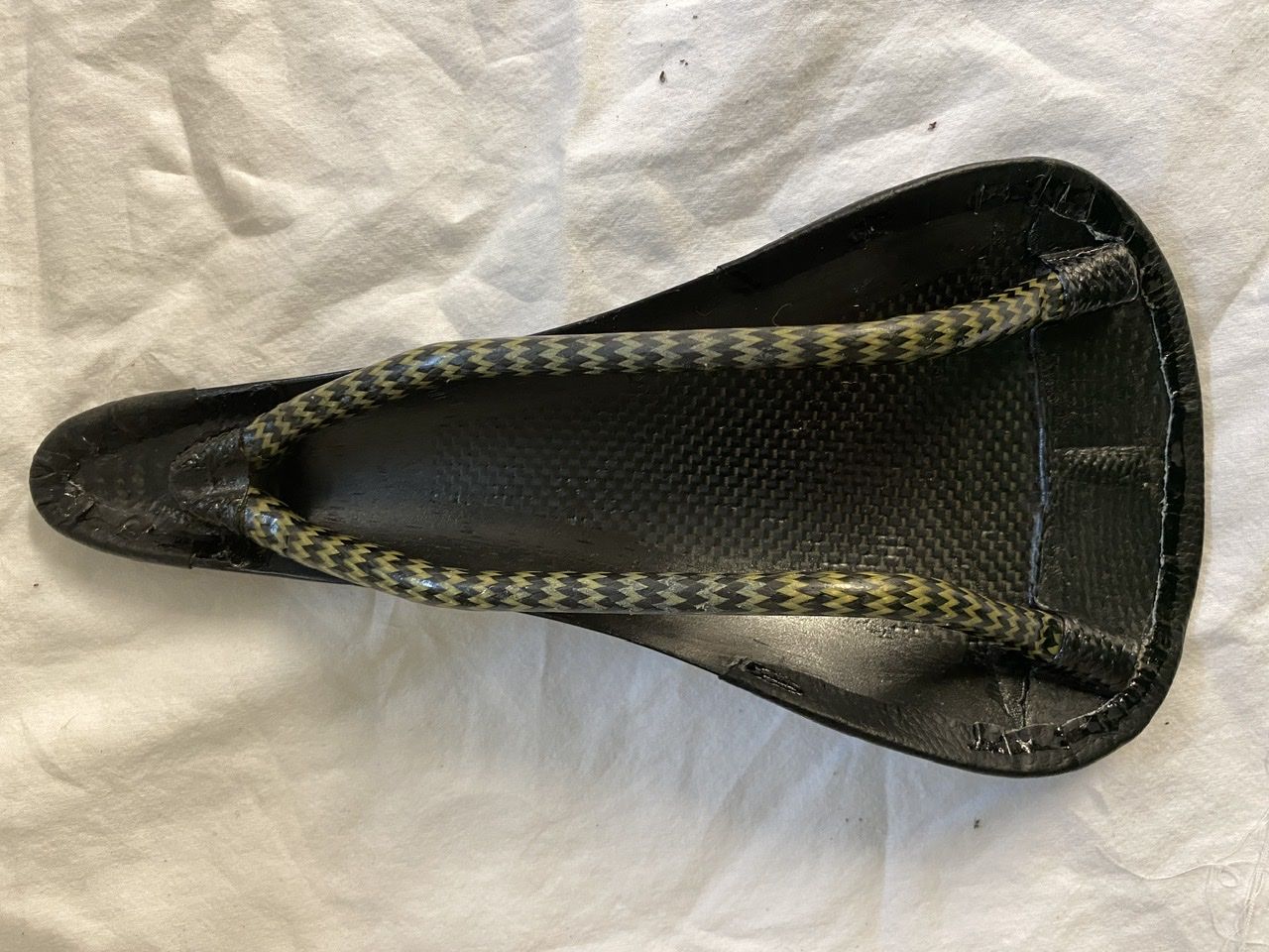 Original wäre eine 51er Offset Gabel zu verbauen, die verbaute Carbon Gabel hat 49mm (China Gabel) und fährt sich flüssig im Trail damit.