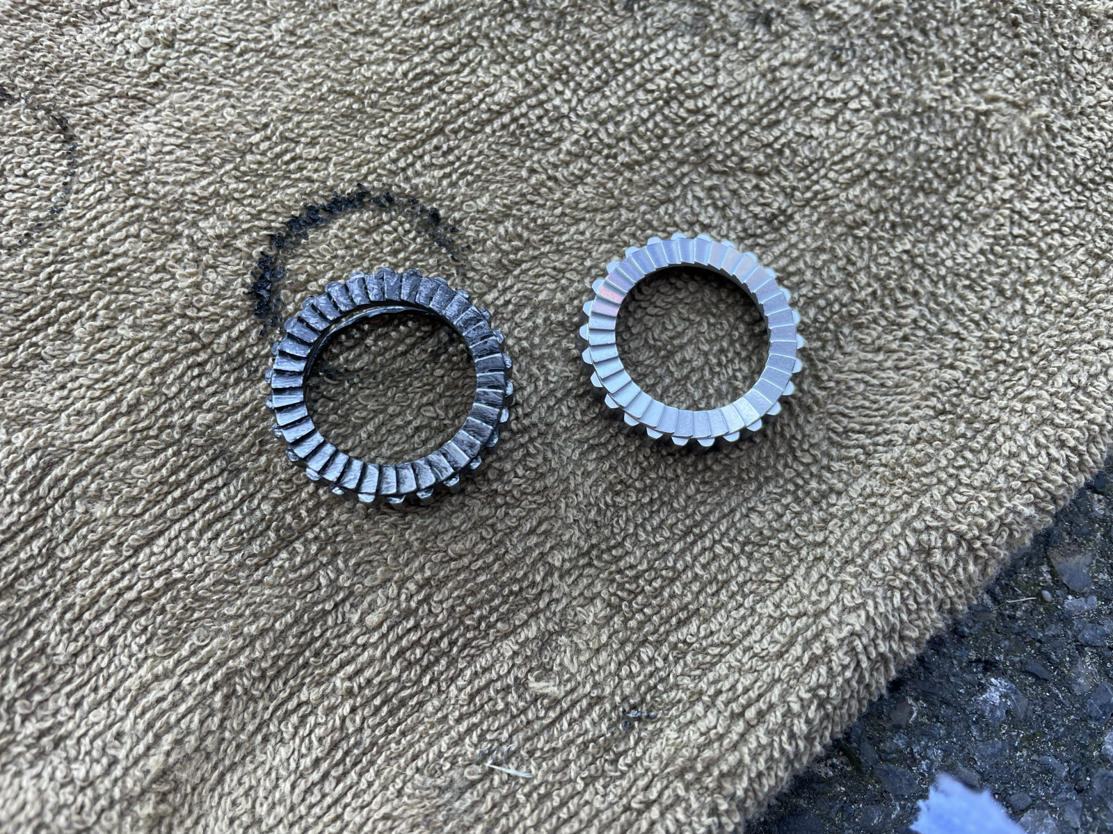 Foto (wo es schwarz ist) war so "ab werk" da hab ich nie was nachgefettetDie Verzahnung wird nur hauchdünn mit speziellem DT Fett benetzt. Zuviel davon, und man kurbelt ins leere