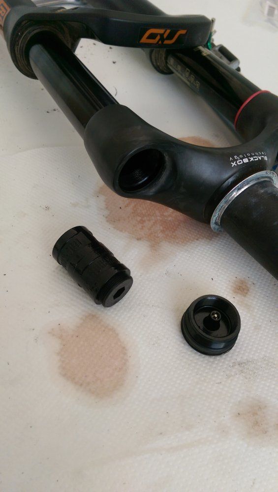 Ich habe nun an der Luftseite die Schraube mit dem 5er Imbus (unten) rausgedreht und an der Dämpfungsseite die 10-er Mutter so wie ich das von klassischen Gabeln kenne. Nur irgendwie, lässt sich das Ding nicht ausseinanderziehen. Irgendwelche Tipps?