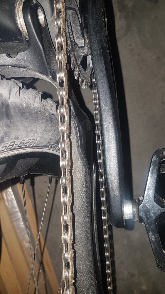 Anderes Thema: Dein KB ist verdammt nah an der Kettenstrebe. Ich hab es schon geschafft, dass das KB das Chainsuckblech küsste