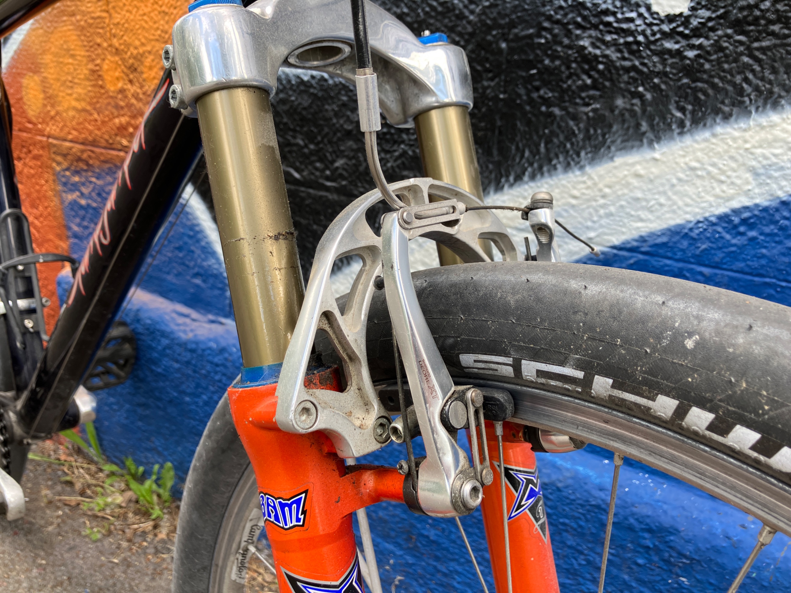 Bei Bedarf kann ich für vorne eine orange HAYES Disc Bremssystem dazu geben. Laufrad vorne und Bremsscheibe müsste dann jedoch besorgt werden.