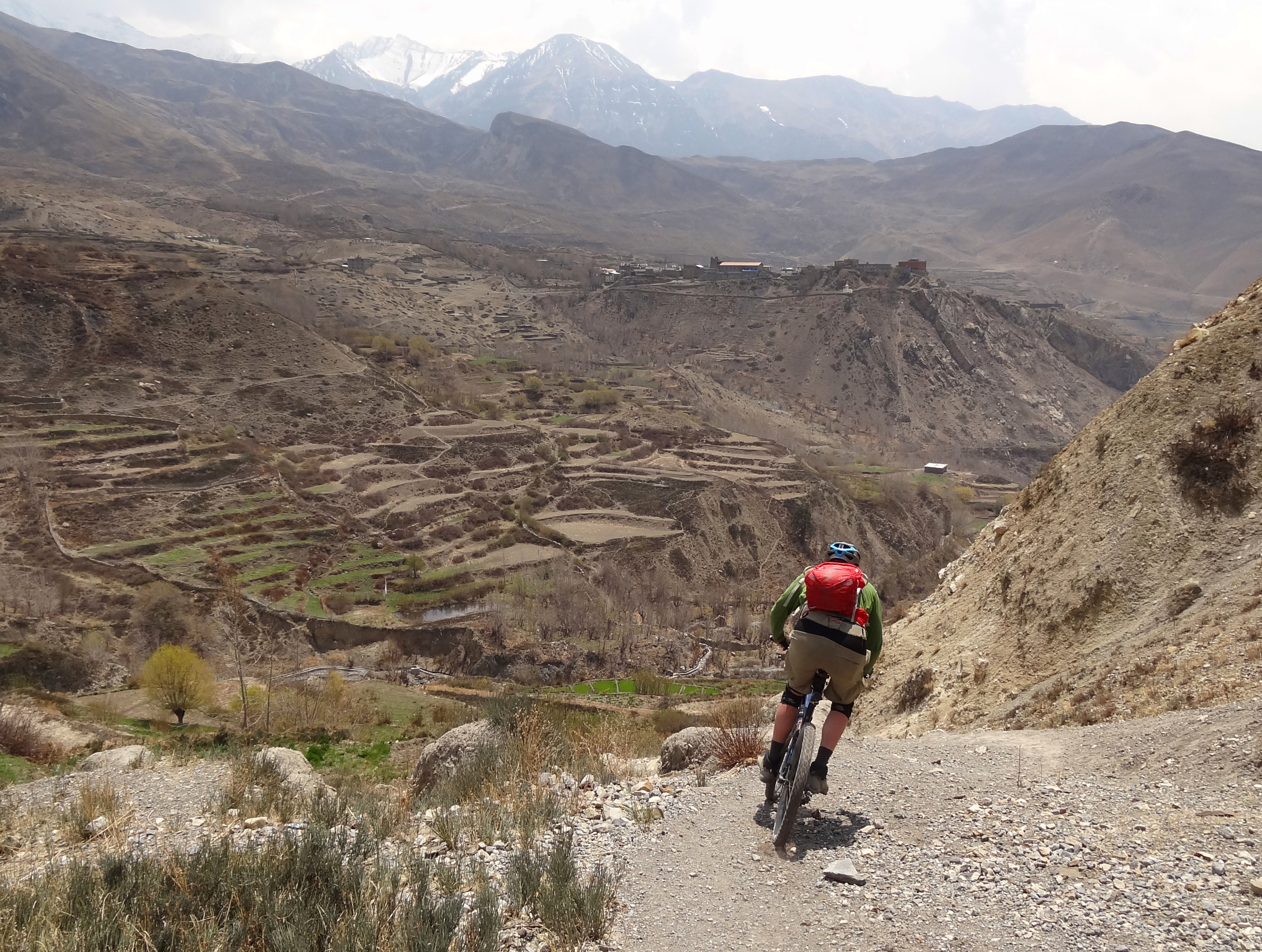 In Lupra ist der Trail vorbei. Es verbleiben nur noch ein paar wenige Kilometer rollendes rotes Flussbett hinab ins Kali Gandaki Tal, dann rechts zurück nach Kagbeni. Tolle Runde... aber nicht besonders lang. Nachmittags leg ich einfach mal in der Sonne die Beine hoch...