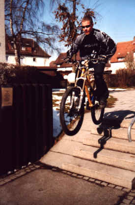 find den zynismus nur teilweise angebracht...hab auch den kopf geschüttelt wegen fehlendem helm + schoner, dann hab ich aber die fette bandage am rechten knie gesehn. Wenns halt der einzige sprung war...dann denk ich, dass es einem nich so schlecht geht wenn man ein 180mm fully unterm arsch hat und in ne treppe reinlandet.