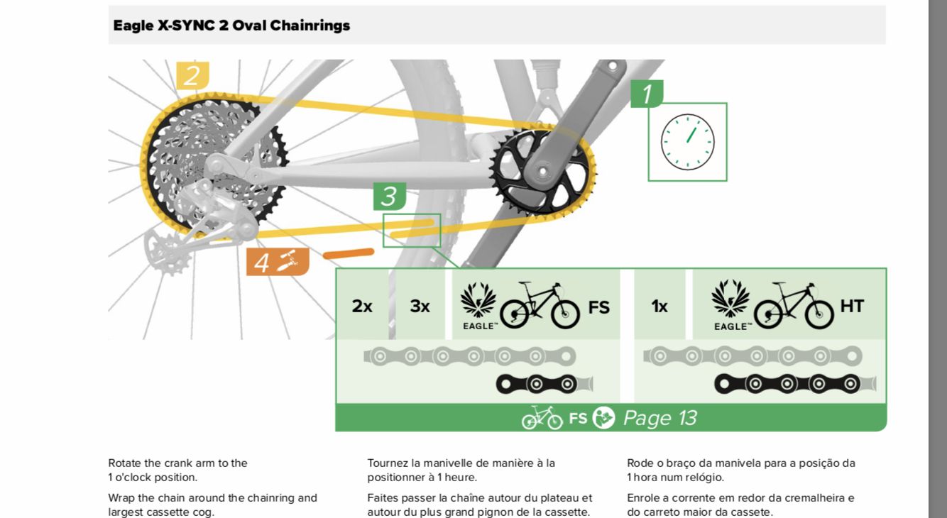 Ich würde sagen Du gehst nach dem linken Bild, dort ist das Fully, die Kettenlänge soll bei SRAM für 3fach, 2fach und dem 1fach Antrieb Eagle gelten.