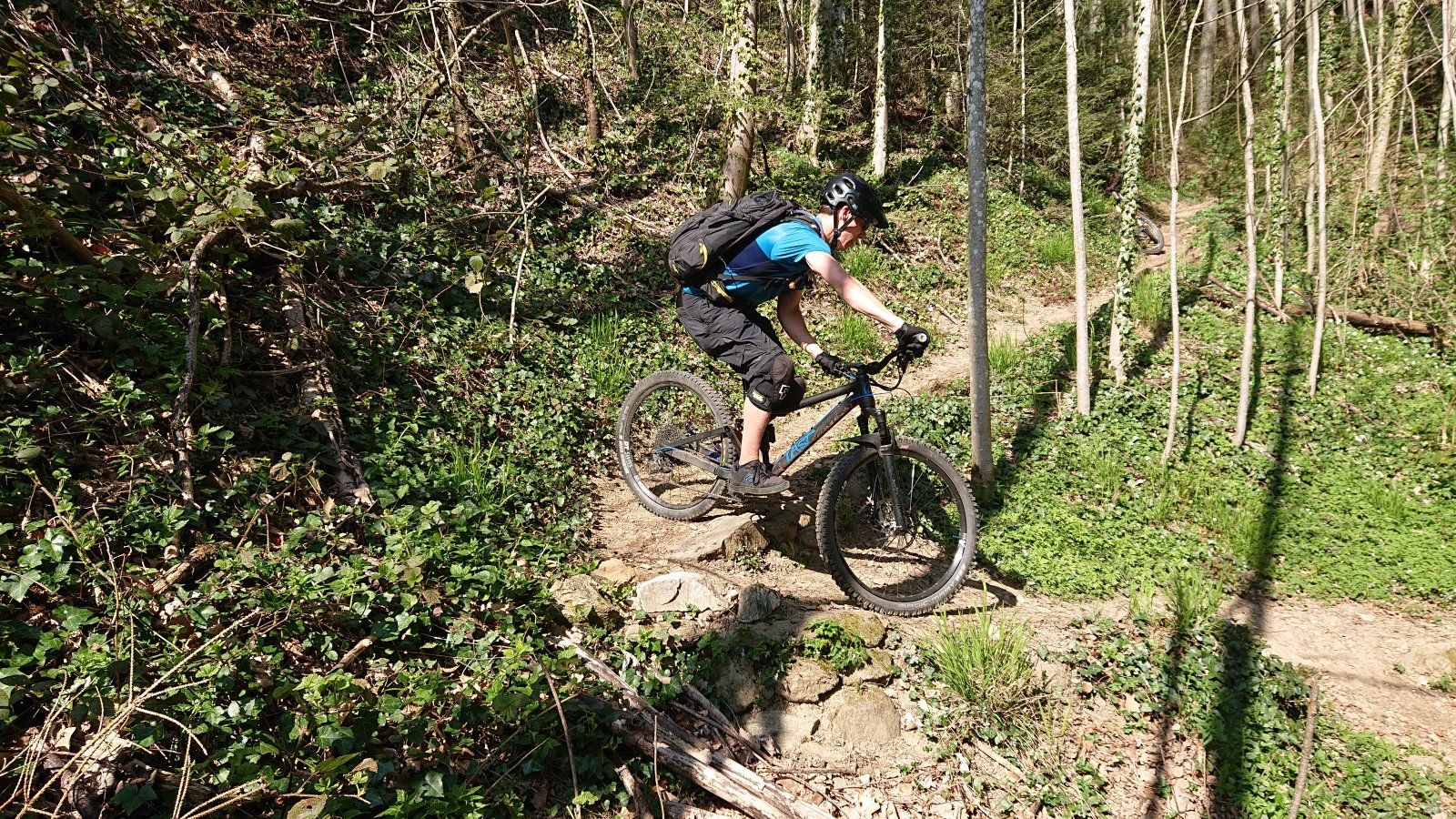 Am liebsten schnell und/oder technisch bergab. Gern Bikepark, gern auch Sprünge. Meist aber Touren zum Trailssammeln. Und Feierabendrunden.