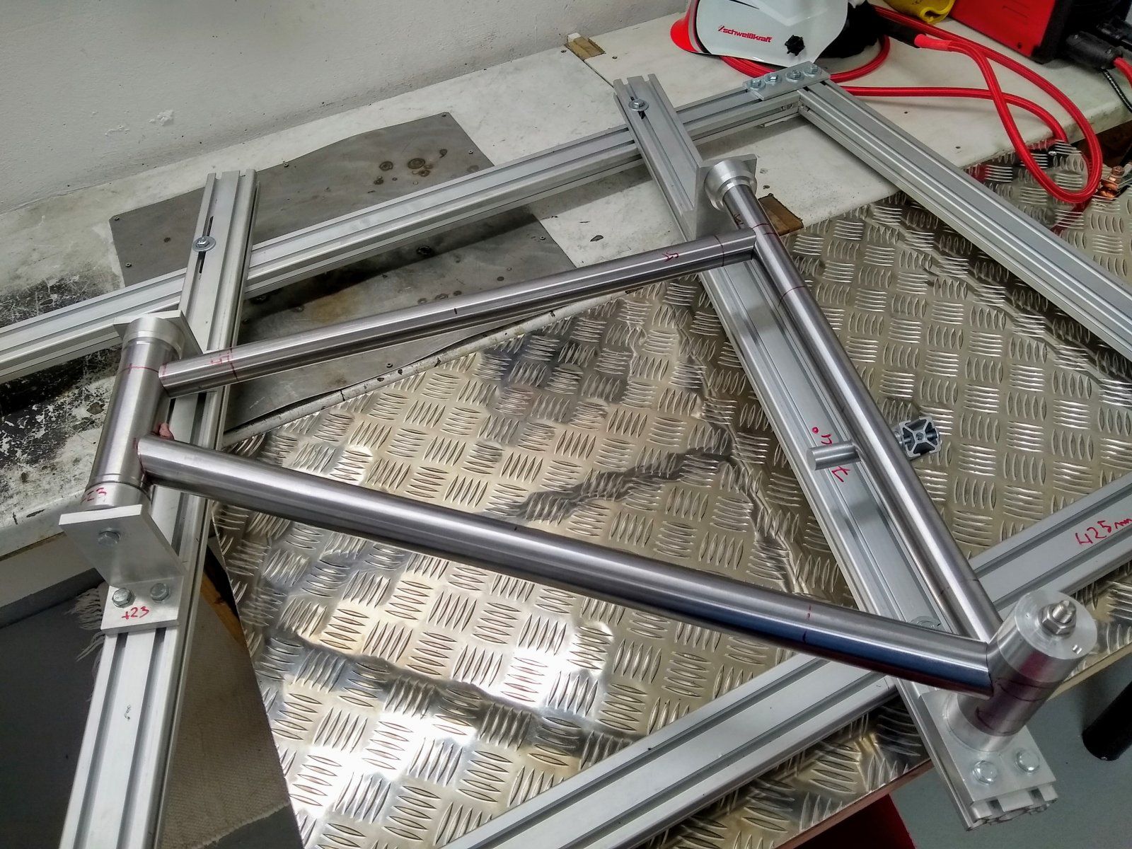 Da per PN die Frage zu näheren Infos bezüglich meiner Anfängerrahmenlehre aufkam, eine kleine Zusammenfassung der Teile und ein paar Fotos. Bei weitem keine perfekte Rahmenlehre mit Winkel- und Längenmaß, aber es lässt sich mit entsprechendem Messwerkzeug auf Millimeter genau arbeiten. Ob man letzten Endes beim Fahren tatsächlich merkt ob die Kettenstrebe 1 mm länger oder kürzer ist steht auf einem anderen Blatt 😉 Wichtig ist, dass alles schön fluchtet. Die Lehre passt außerdem für alle möglichen Geos von Rennrad bis Endurohardtail und lässt sich mit kleinen Änderungen umrüsten auf andere Standarts. Die ganzen zusätzlichen Verstrebungen zum Halten der Rohre wie auf Seite 1 zu sehen sind unnötig gewesen, viel besser sind kleine Neodym Magnete 👍🏻. Sehr hilfreich ist ein digitaler Winkelmesser. Materialkosten schätze ich grob auf +-200 €.