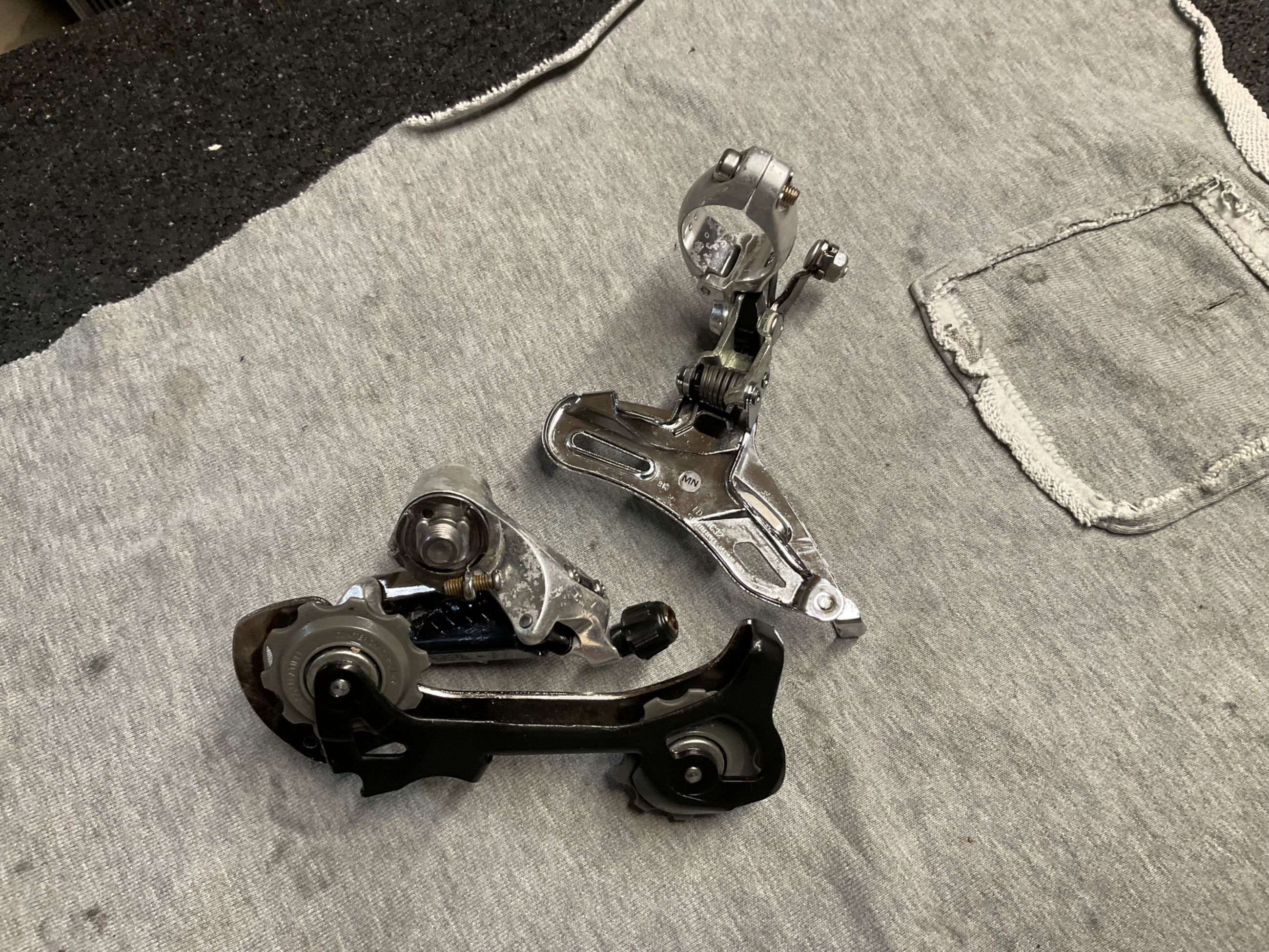 habe von einer Garagenleiche wenig gefahrene STX 7fach Teile abzugeben. Kurbel FC-MC 32, Schaltwerk und Umwerfer. Die Oberflächen zeugen vom Zahn der Zeit, sind ohne tiefe Kratzer und nur geringe Gebrauchspuren. Waren im Ultraschallbad, alle Gewinde und 4Kant sind gut, KB Schrauben sind nach dem Bad einmal raus und mit Fett wieder rein.