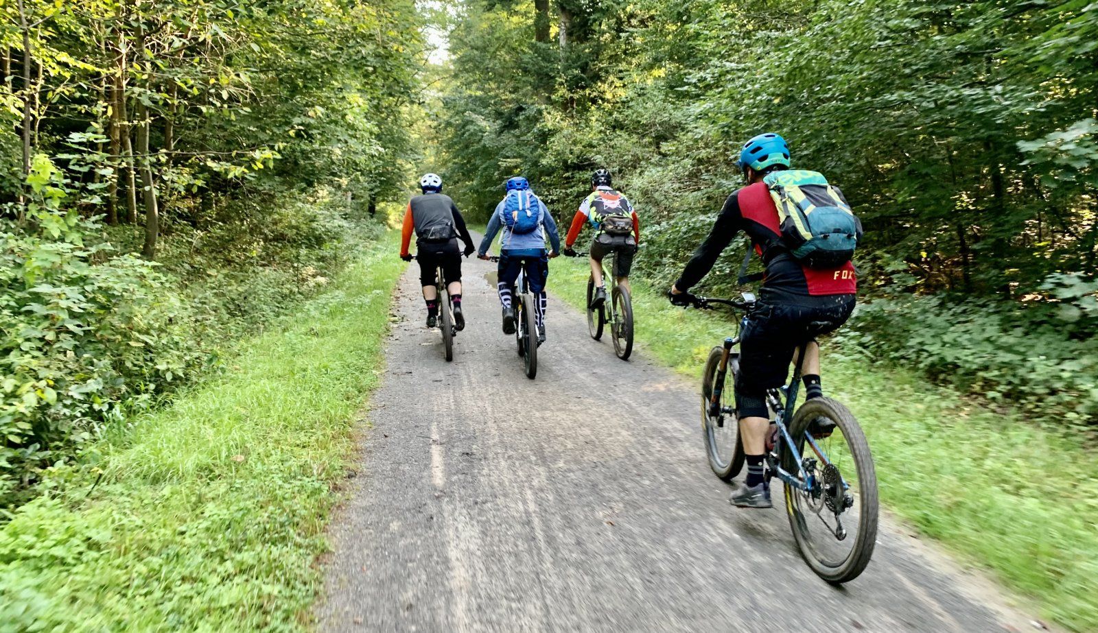 Bevor hier ein falscher Eindruck entsteht: Der Motor war während der Tour nicht an (das glaube ich dem Kollegen auch) und es hat nur einer (mit Stolz) Lycra getragen, die anderen füllen ihre Klamotten einfach nur gut aus 😅
