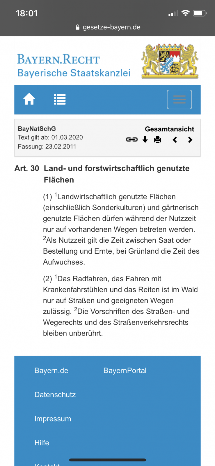 Rechtlich völlig falsch, weil konträr zum Beispiel zu dem Urteil von Aichach ist der Text zum Thema" Befahren von sogenannten Rückegassen":