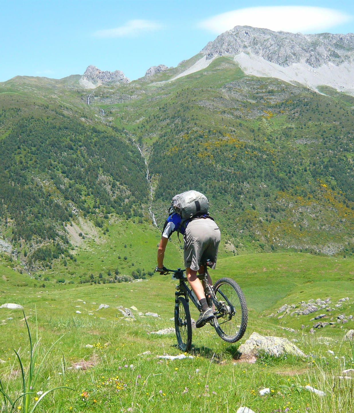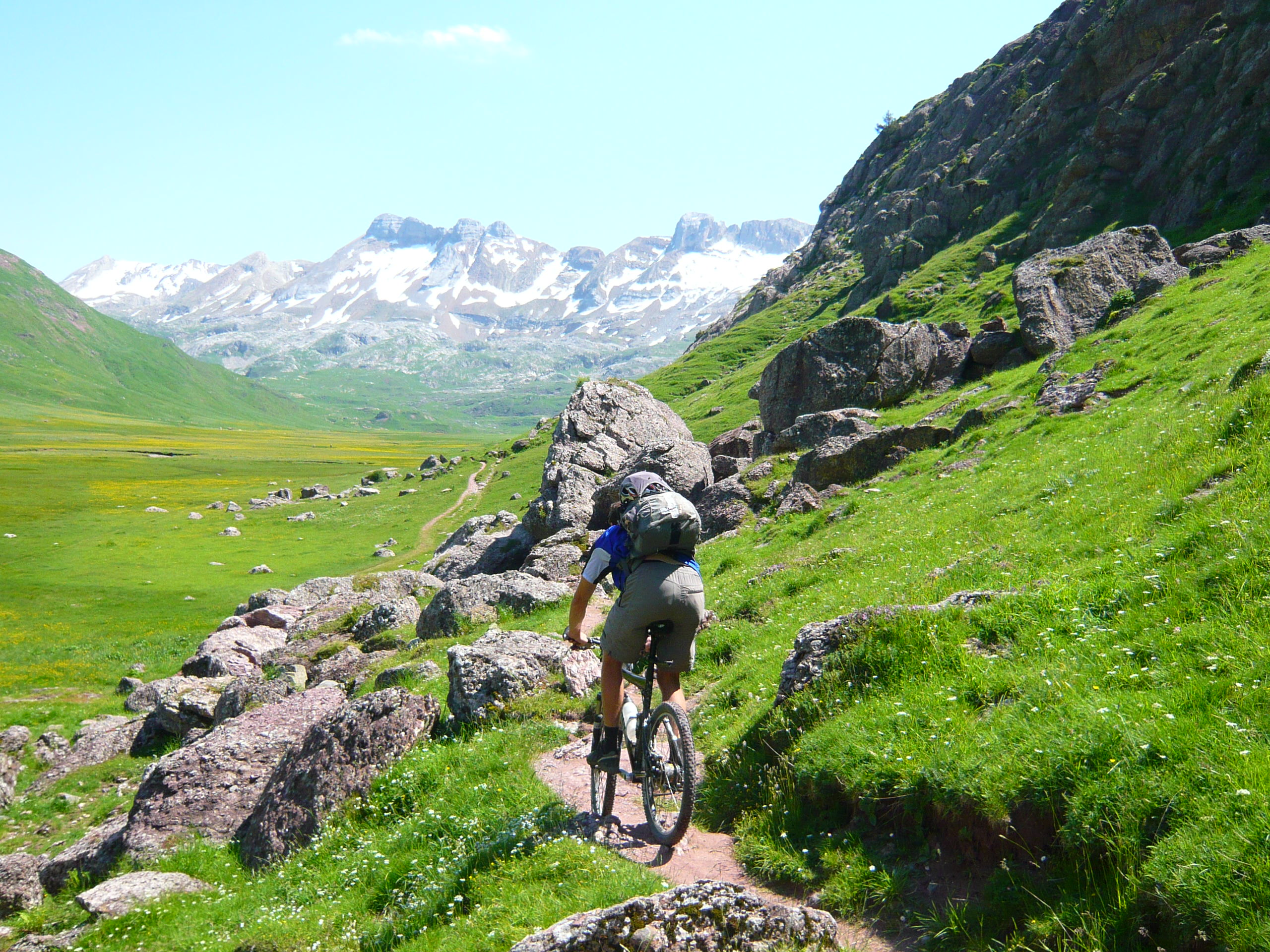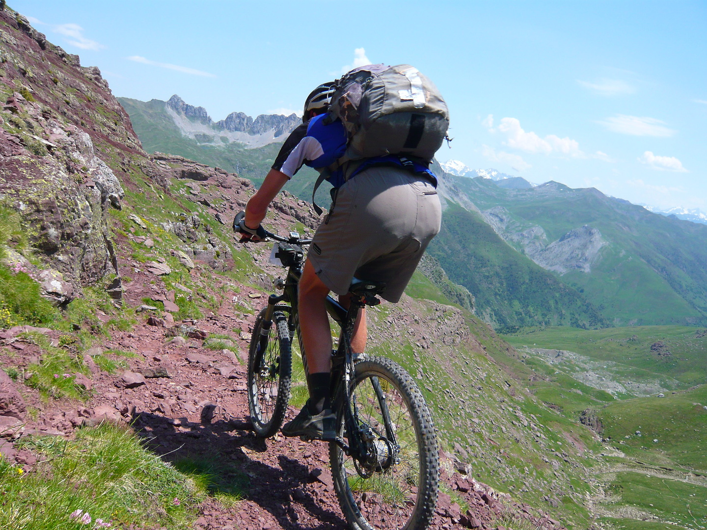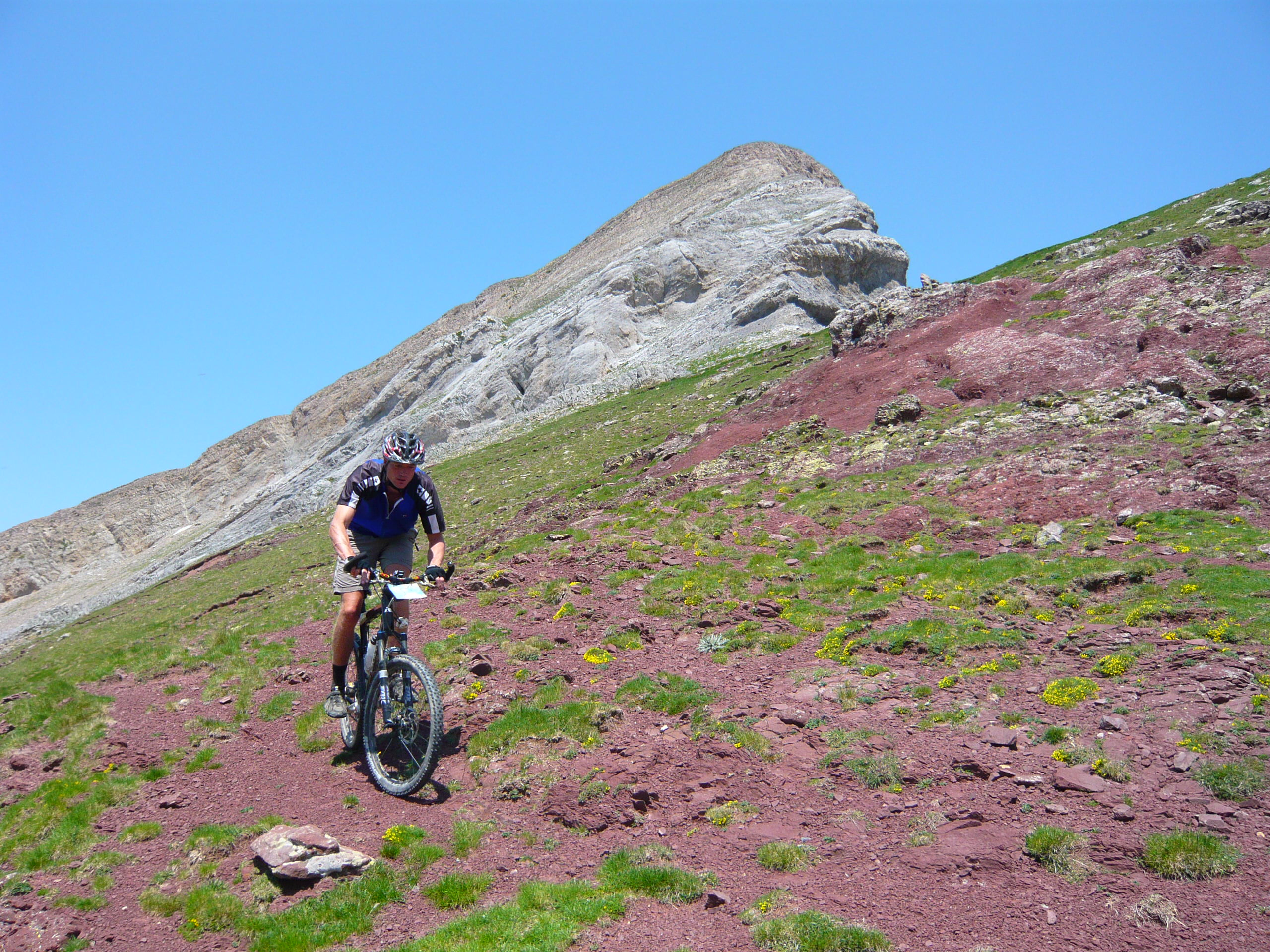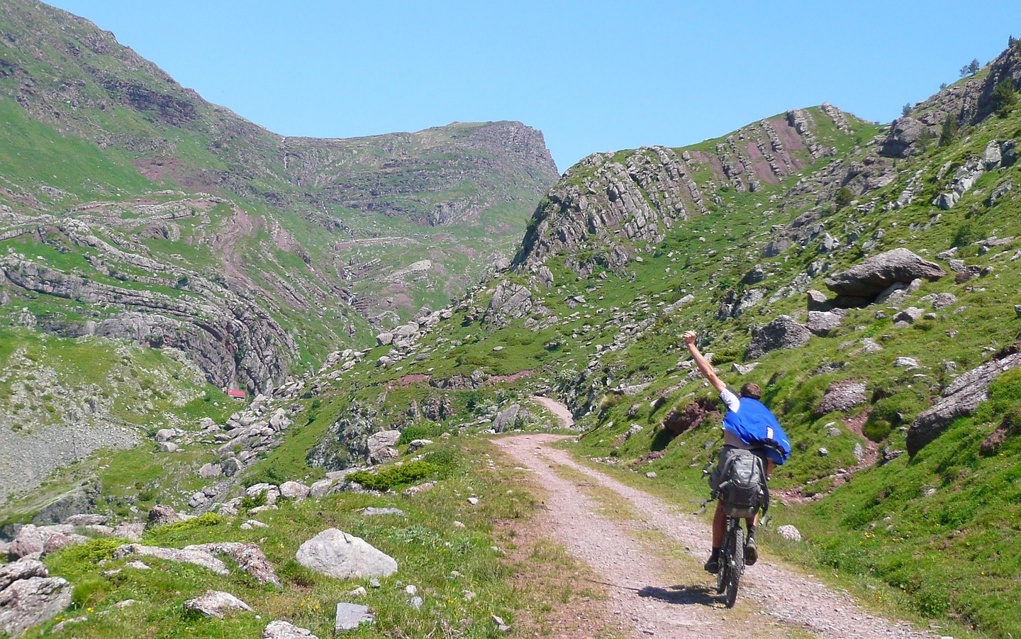 Schon bald jedoch endet die Piste und ein steiler Fussweg beginnt. Hoppala, kleine Überraschung. Der Pass ist doch noch knackige 800 Höhenmeter über mir?! Hat da jemand was erzählt von wegen die Transpyrenaica ginge nur über langweilige Schotterstraßen? Heute wohl kaum...