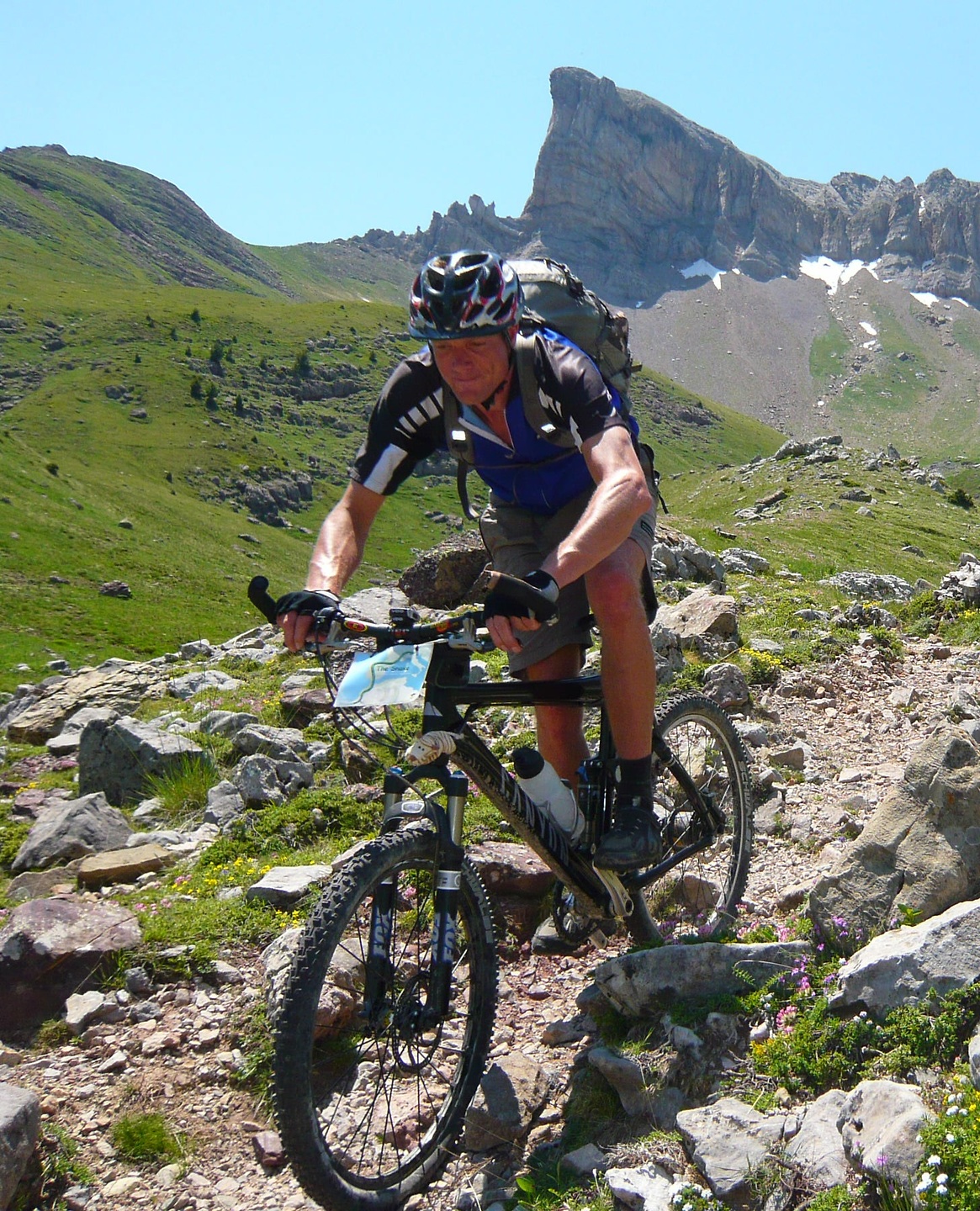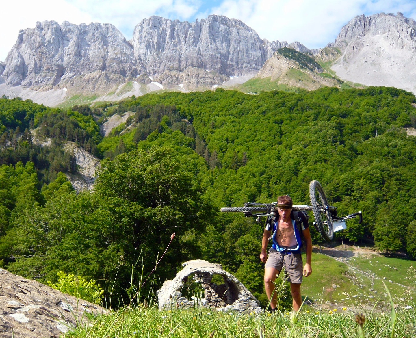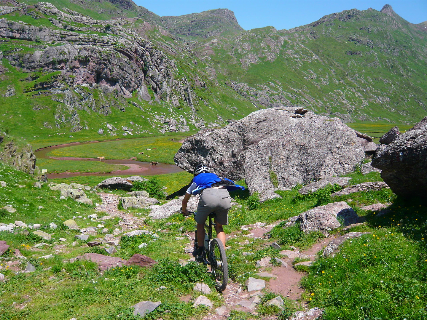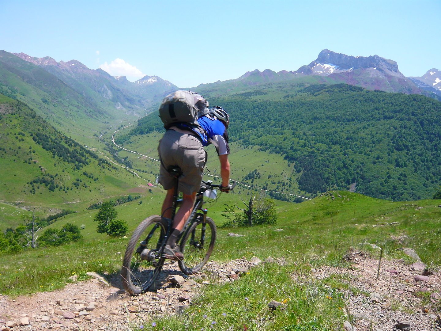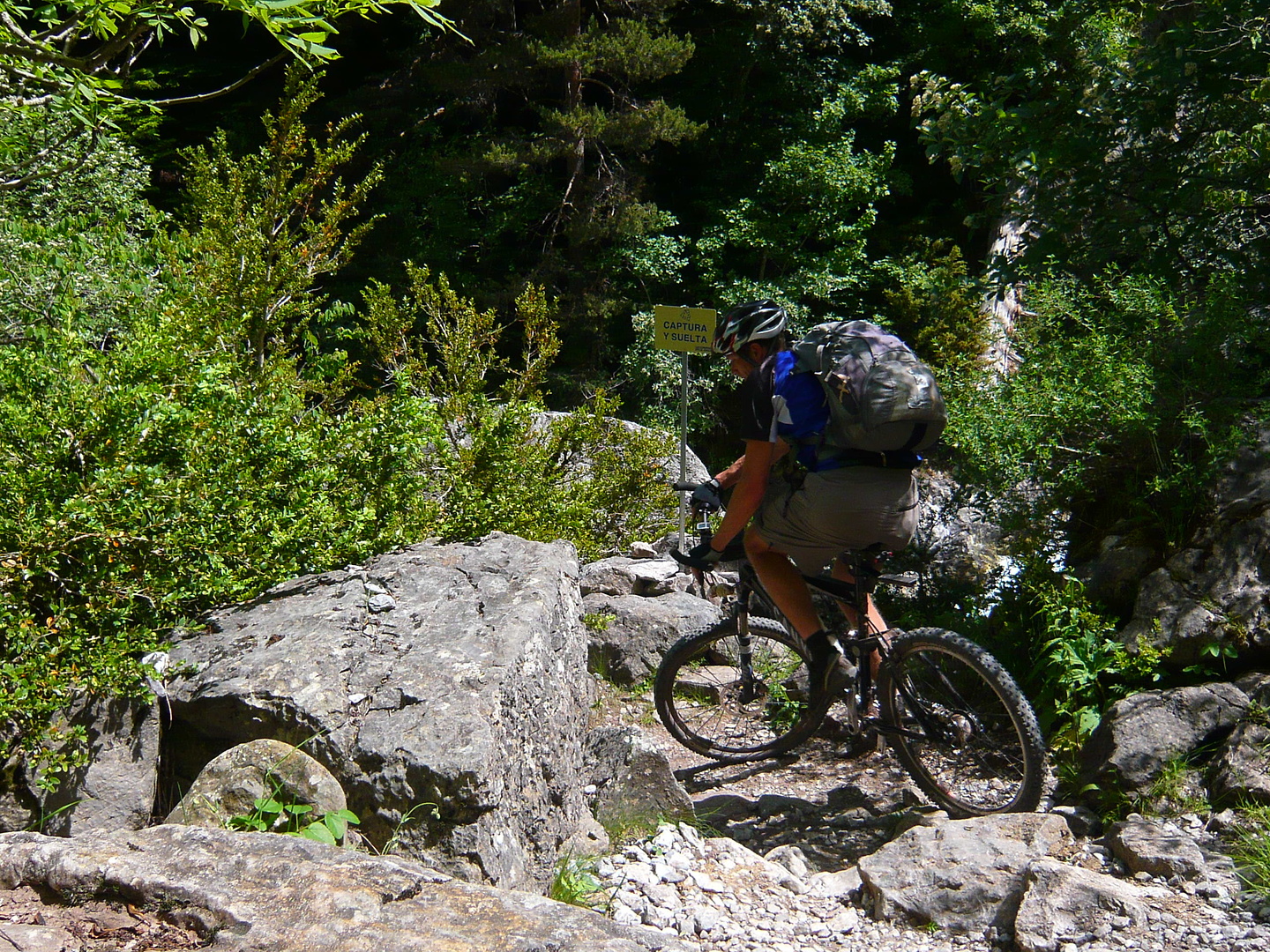 Schon bald jedoch endet die Piste und ein steiler Fussweg beginnt. Hoppala, kleine Überraschung. Der Pass ist doch noch knackige 800 Höhenmeter über mir?! Hat da jemand was erzählt von wegen die Transpyrenaica ginge nur über langweilige Schotterstraßen? Heute wohl kaum...