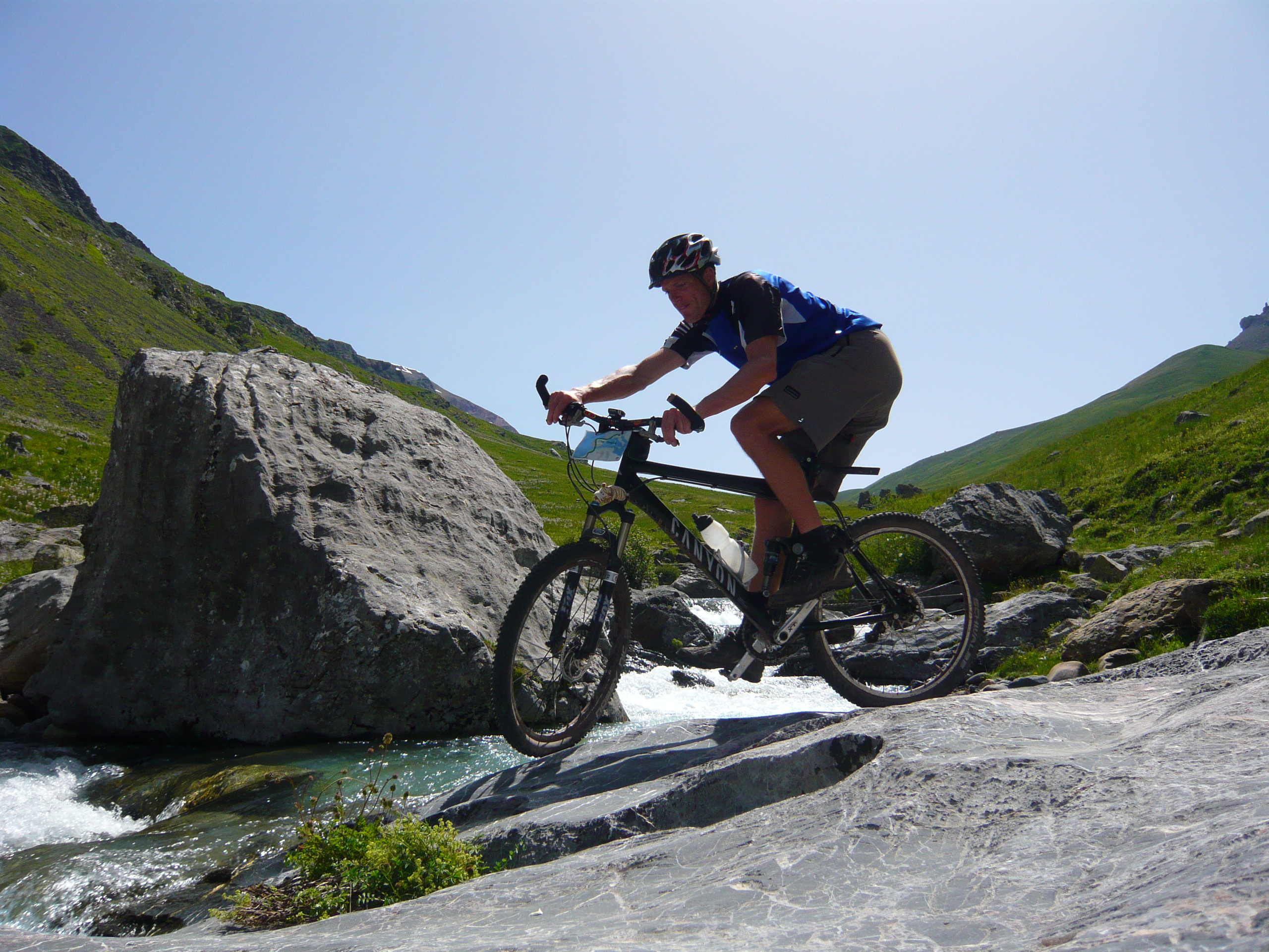 Das kohlefasrige Spectral besteht den Tragetest mit Bravour und fühlt sich eindeutig besser auf der Schulter an als mein altes Bike. Die fehlenden Kilos merkt man grade beim schleppen deutlich. Auch mit Rohloff liegt der Hobel gut auf der Schulter, der ganze Aufbau verschiebt sich zum Gleichgewicht nur ein paar Zentimeter in Richtung Hinterrad. Da freut einen dann das etwas kleinere Kettenblatt, sonst hätte man ständig die Zähnchen im Genick