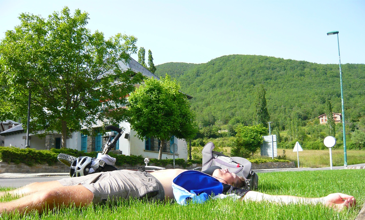 Irgendwie bin ich heut den ganzen Tag schon etwas schlaff in den Beinen. Der Hals kratzt auch, ich werd mir doch nix eingefangen haben? Ein Supermarkt hinter Sabinanigo wird geplündert und ich fülle zweieinhalb Kilo Dopingmittel ein, vielleicht geht's danach ein bisserl flotter voran.
