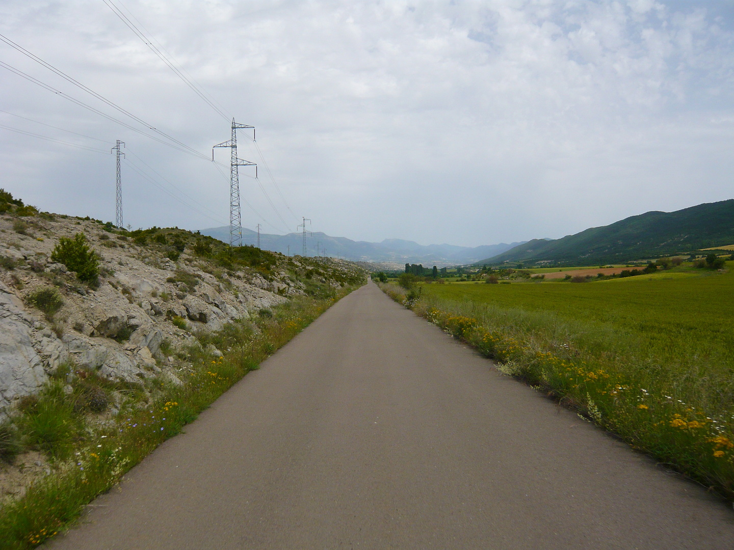 Camino Santiago zwischen Jaca und Sabinanigo, immerhin besser als Forstpiste im Wald.